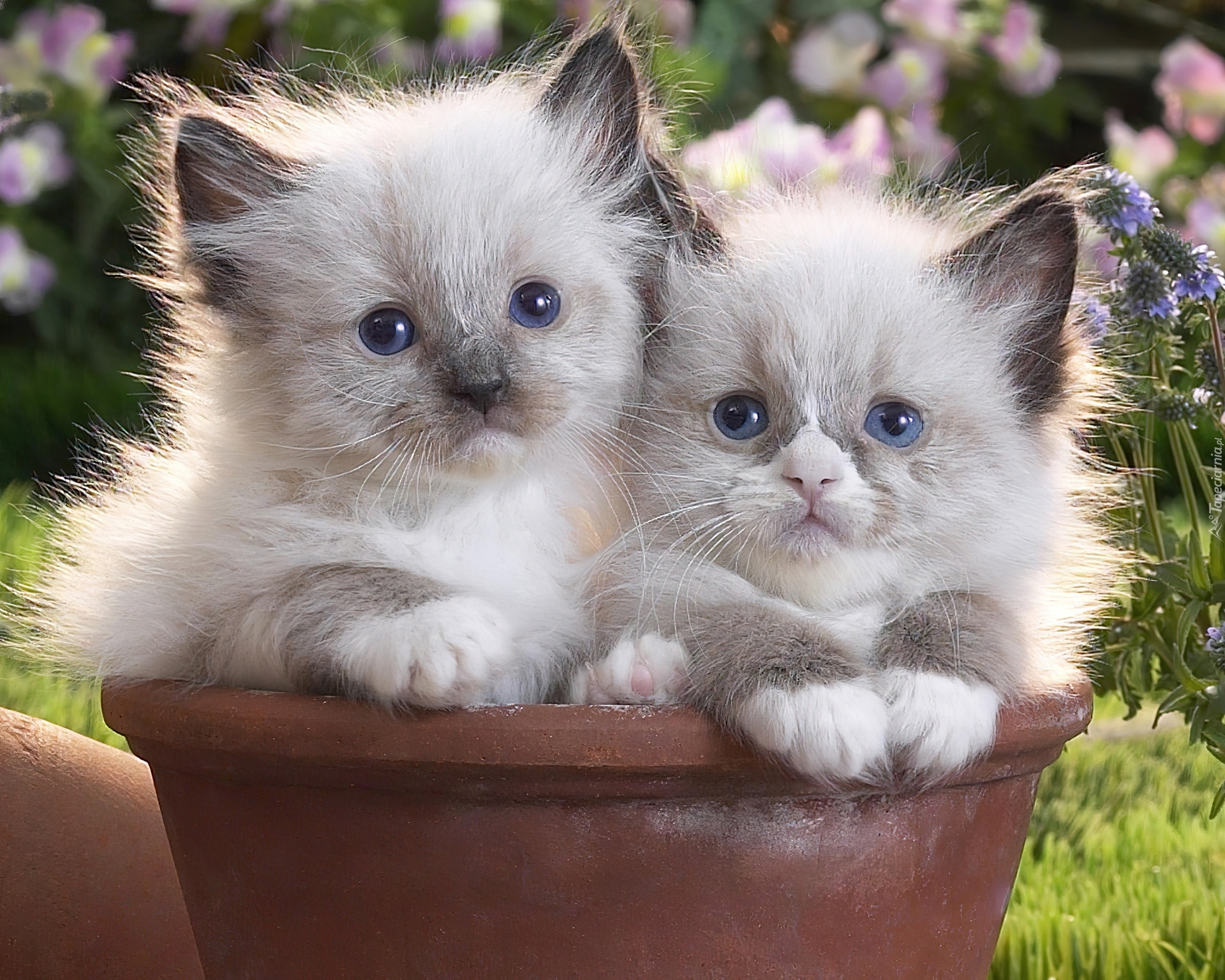 Edytor tapety: Dwa, Małe, Kotki, Donica