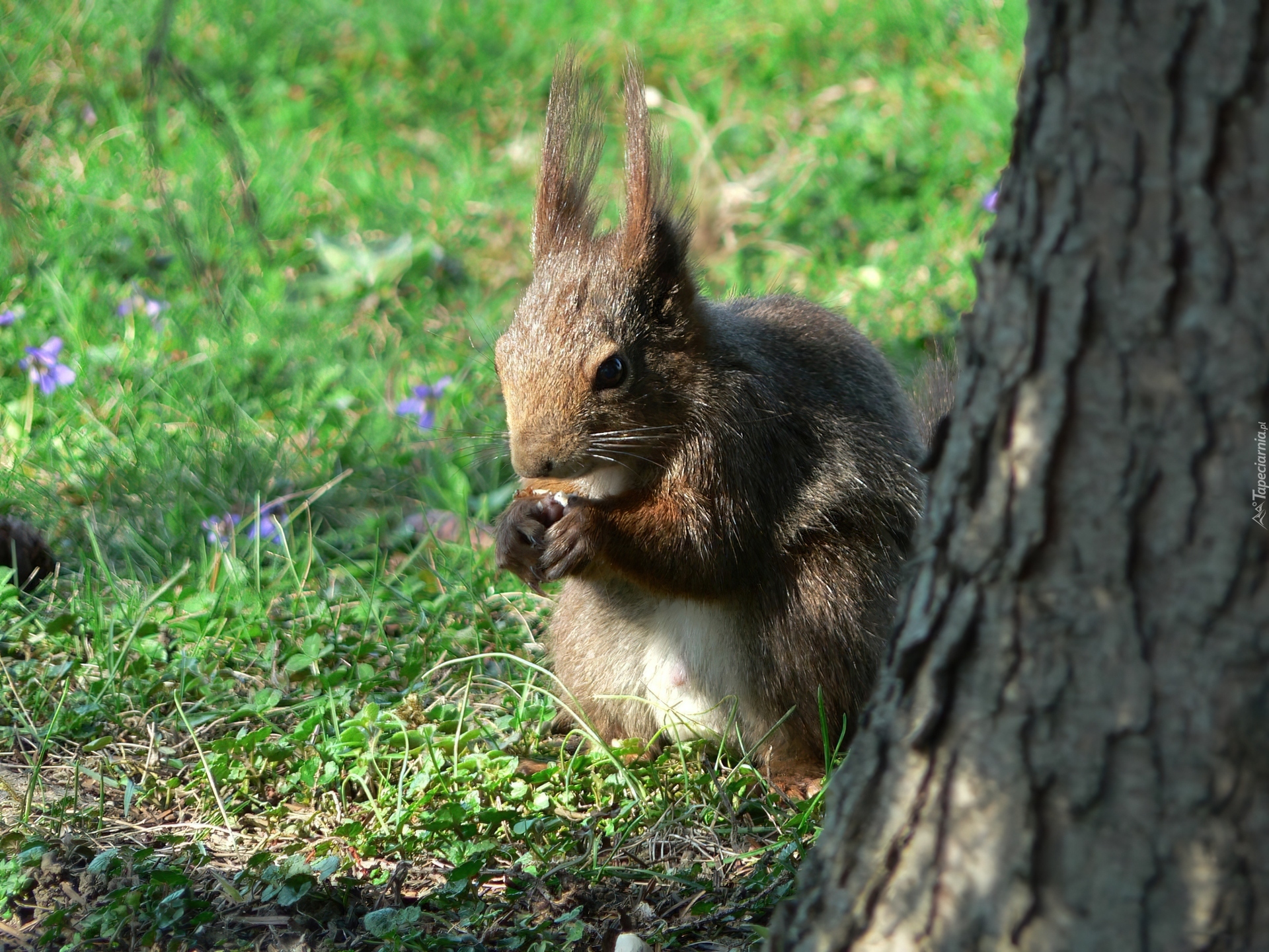 Edytor tapety: Wiewiórka, Orzeszek, Drzewo, Trawa