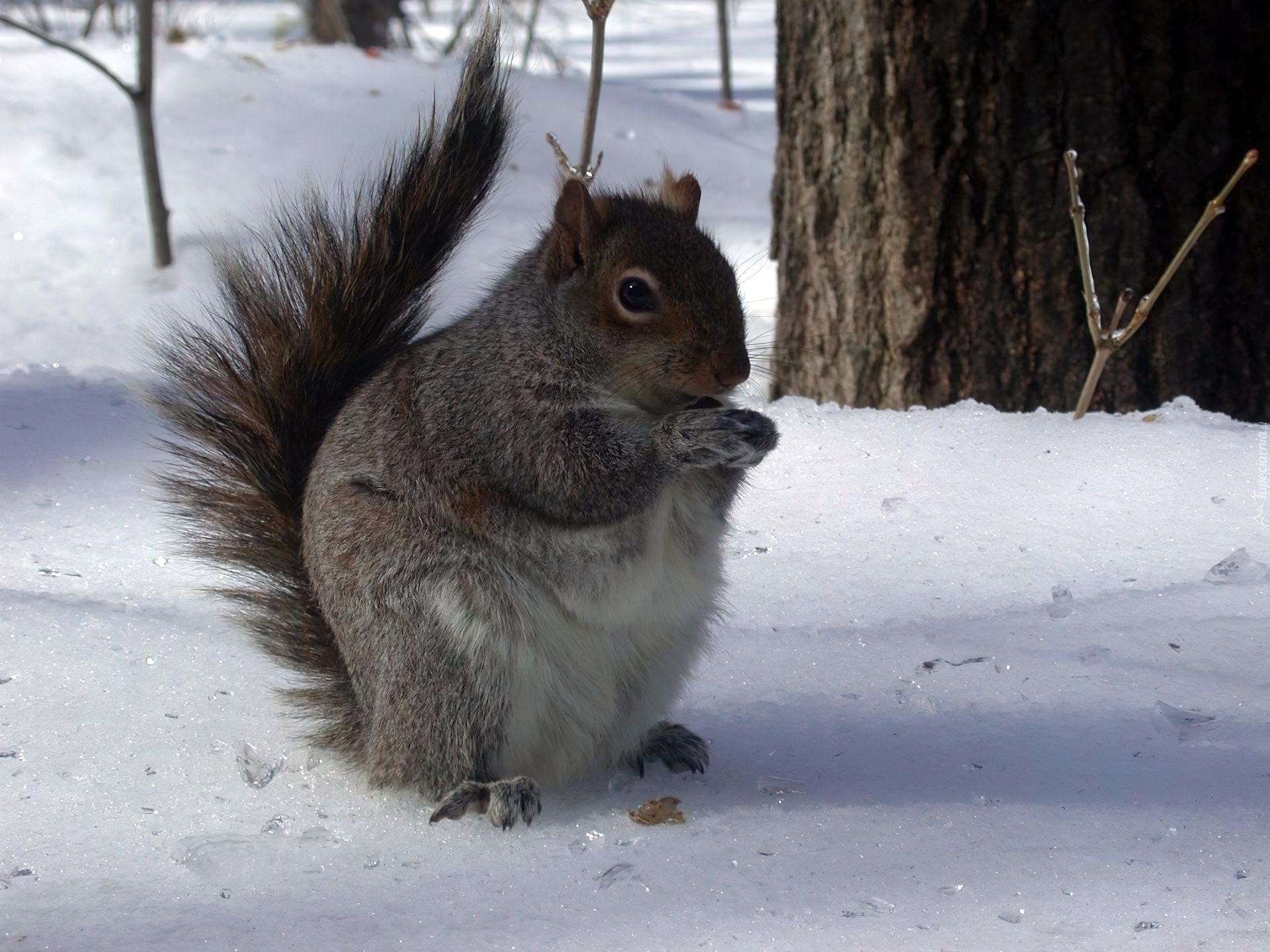 Edytor tapety: Wiewiórka, Drzewo, Śnieg