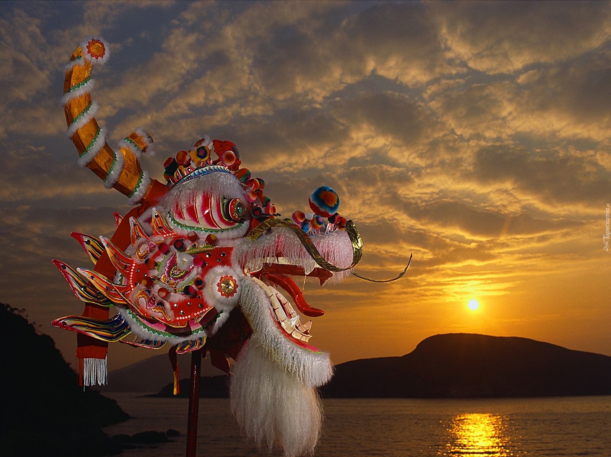 Edytor tapety: Maska, Smoka, Kolory, Zachód, Morze