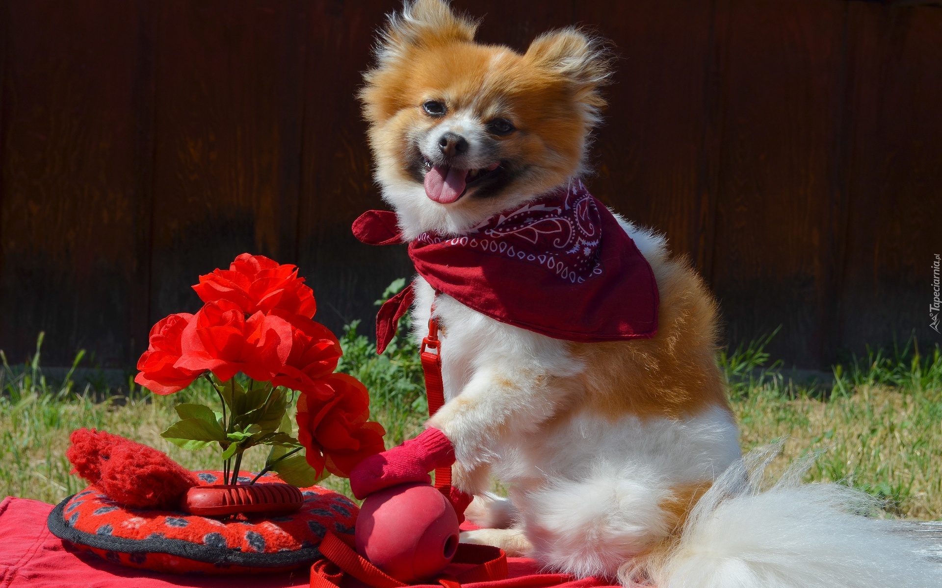Edytor tapety: Piesek, Kwiaty, Trawa