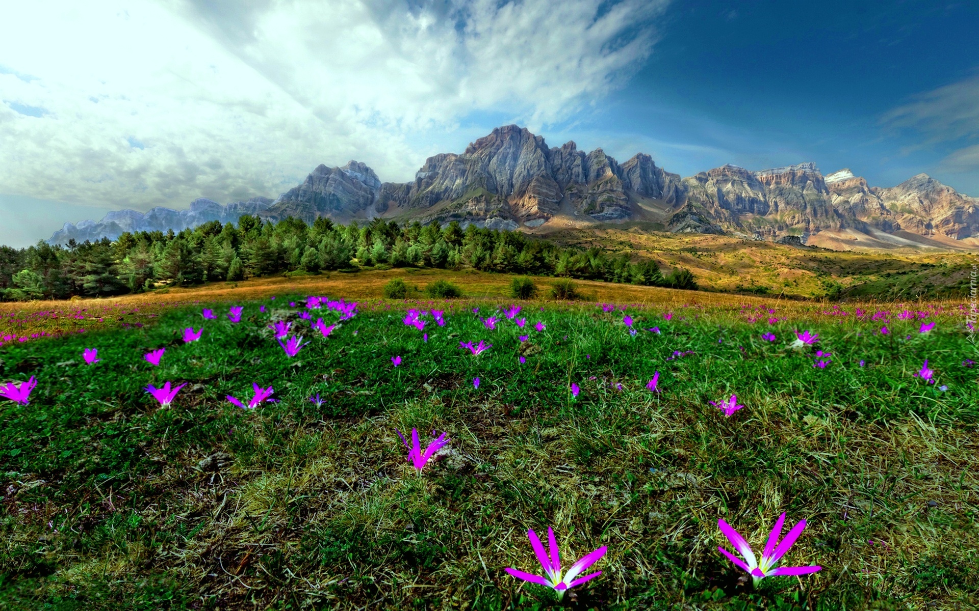 Edytor tapety: Drzewa, Łąka, Kwiatki