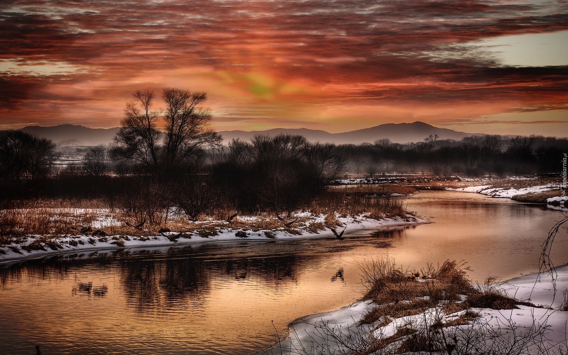 Edytor tapety: Woda, Śnieg, Drzewa, Niebo