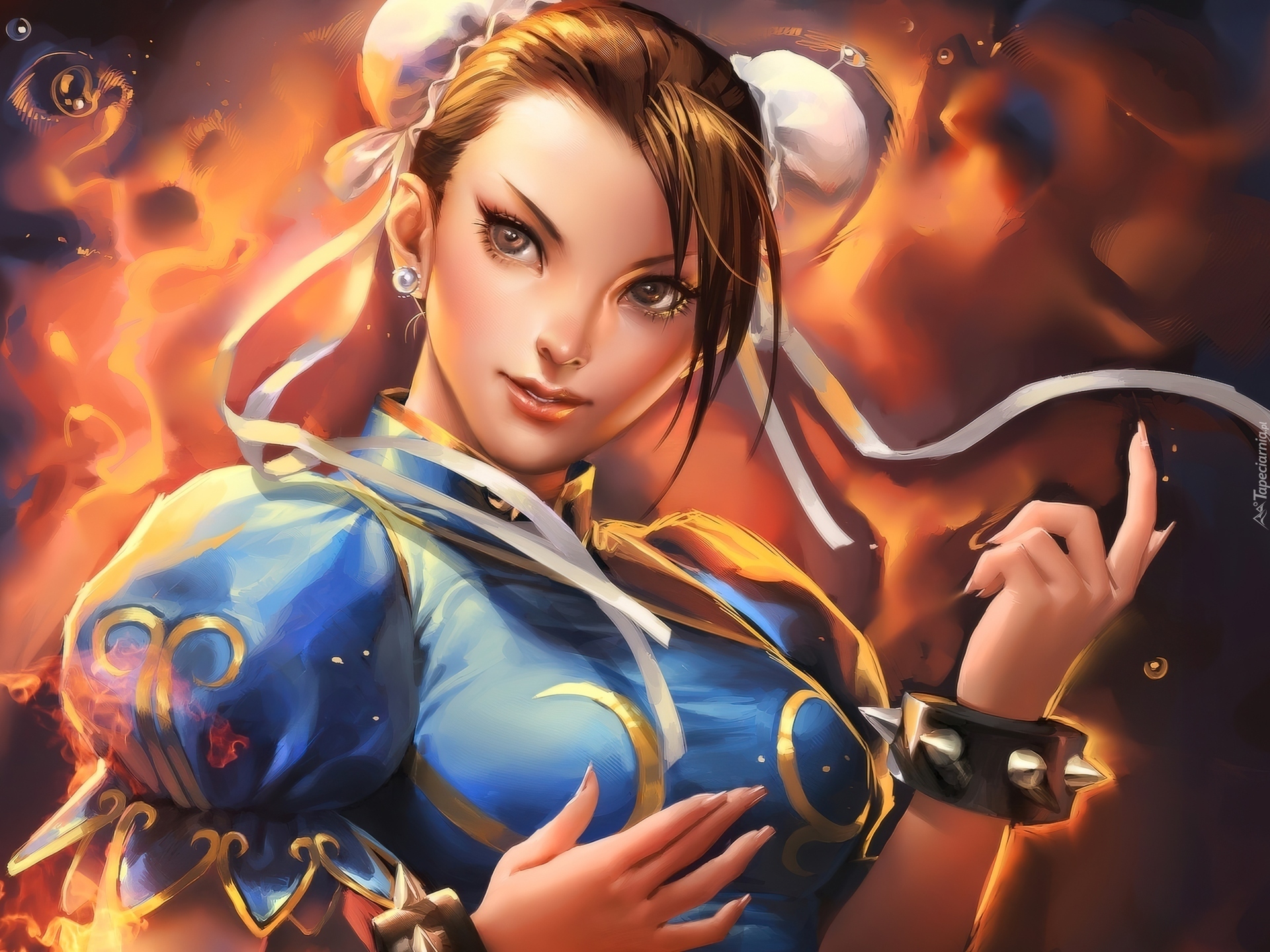 Edytor tapety: Kobieta, Chun-Li, Street Fighter, Twarz, Ogień