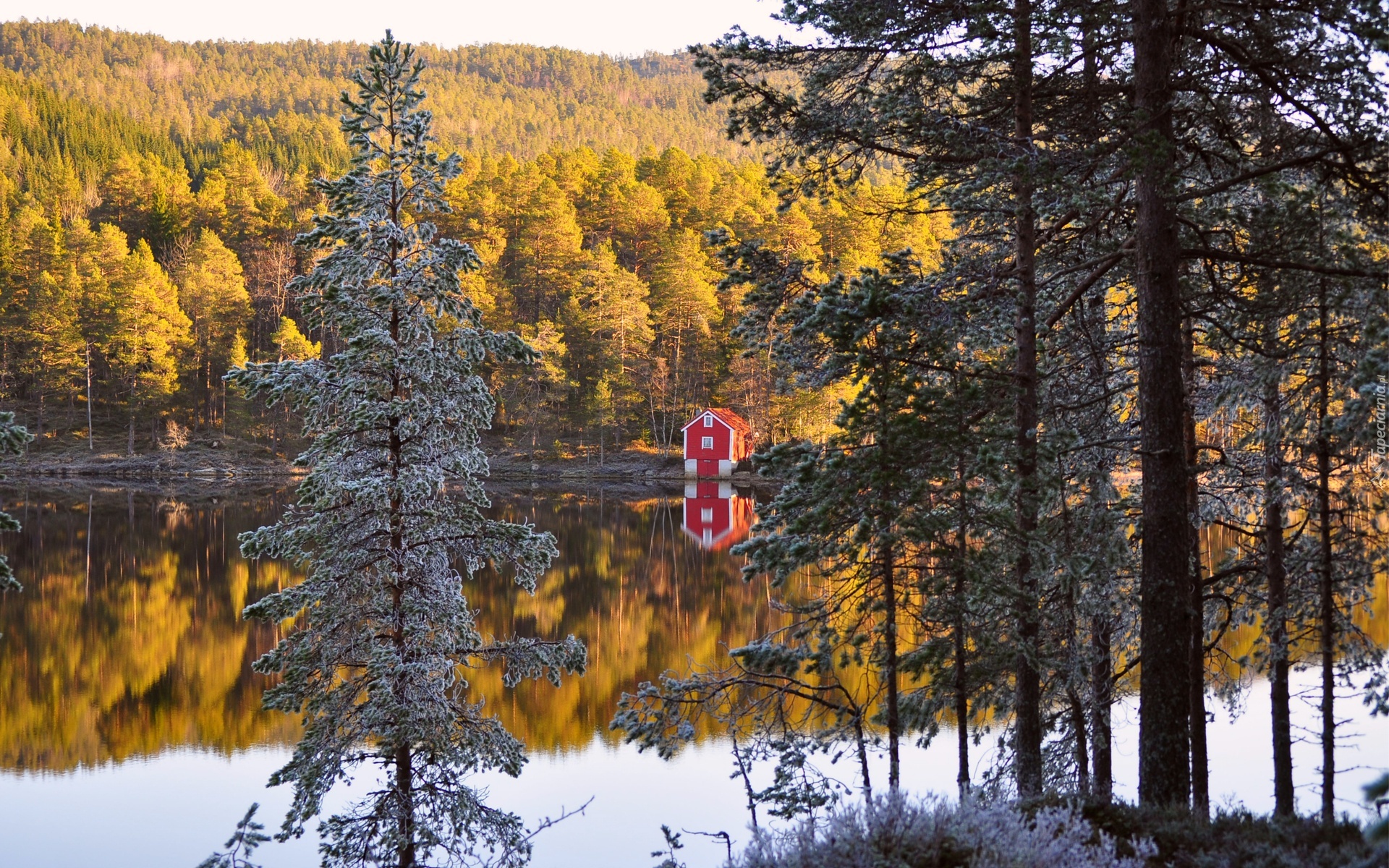 Edytor tapety: Lasy, Jezioro, Dom