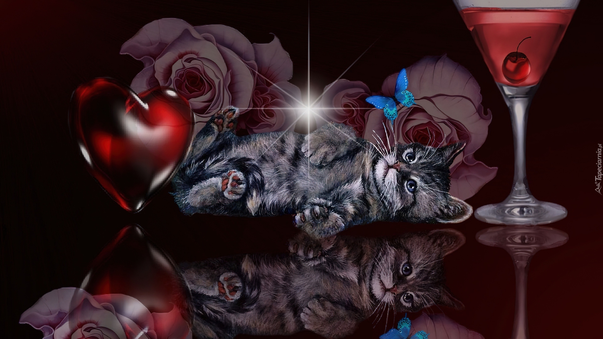 Edytor tapety: Kotek, Serce, Odbicie, Art