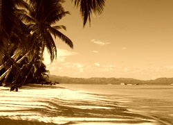 Edytor tapety: Piasek, Palma, Woda, Wzgórza, Niebo
