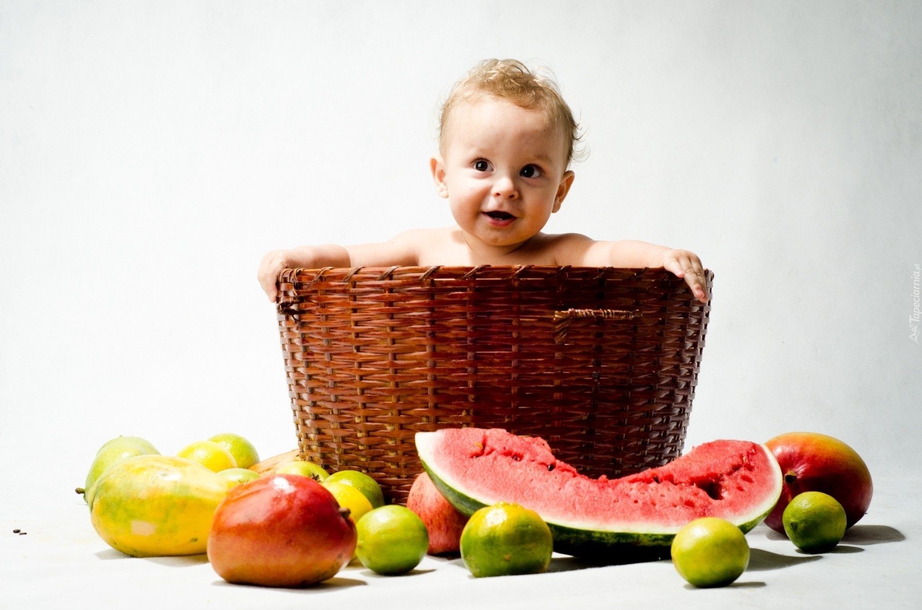 Edytor tapety: Kosz, Dziecko, Owoce