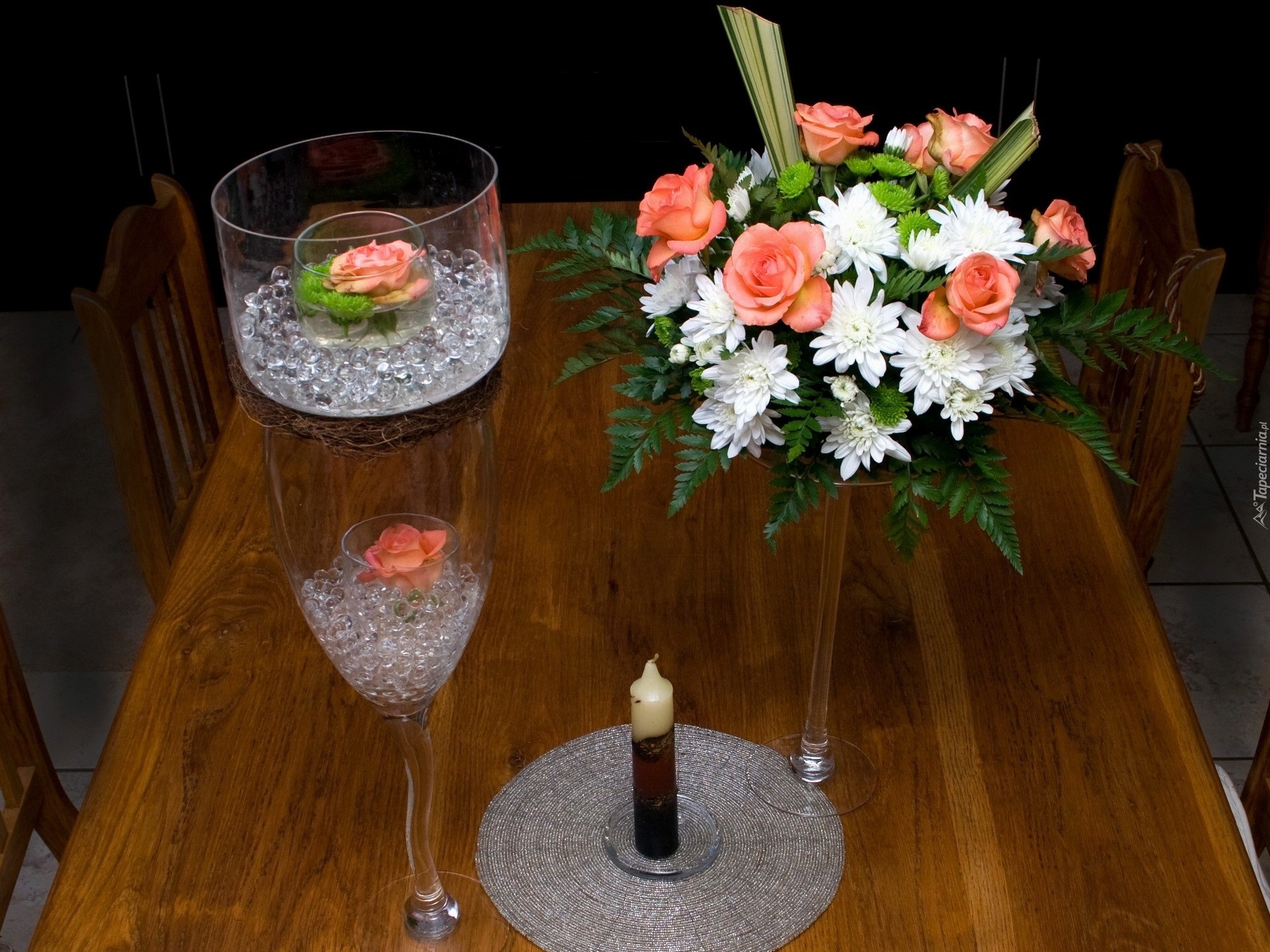 Edytor tapety: Bukiet, Róż, Stół, Świece