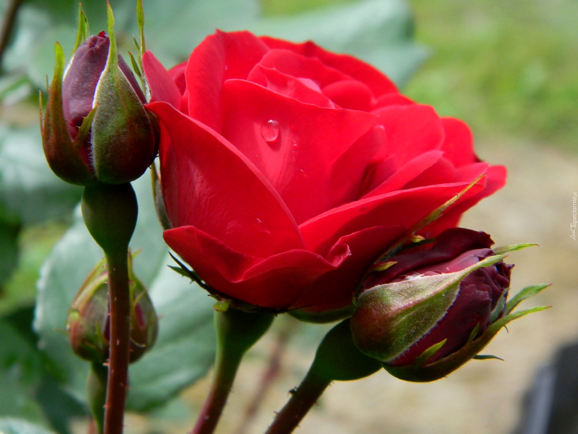 Edytor tapety: Czerwona, Róża, Pąki, Kropla, Wody