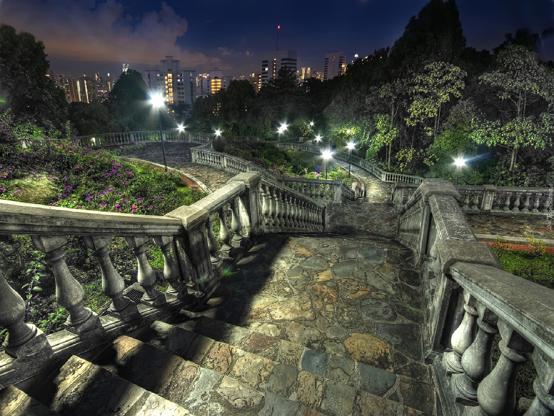 Edytor tapety: Schody, Miasto, Noc