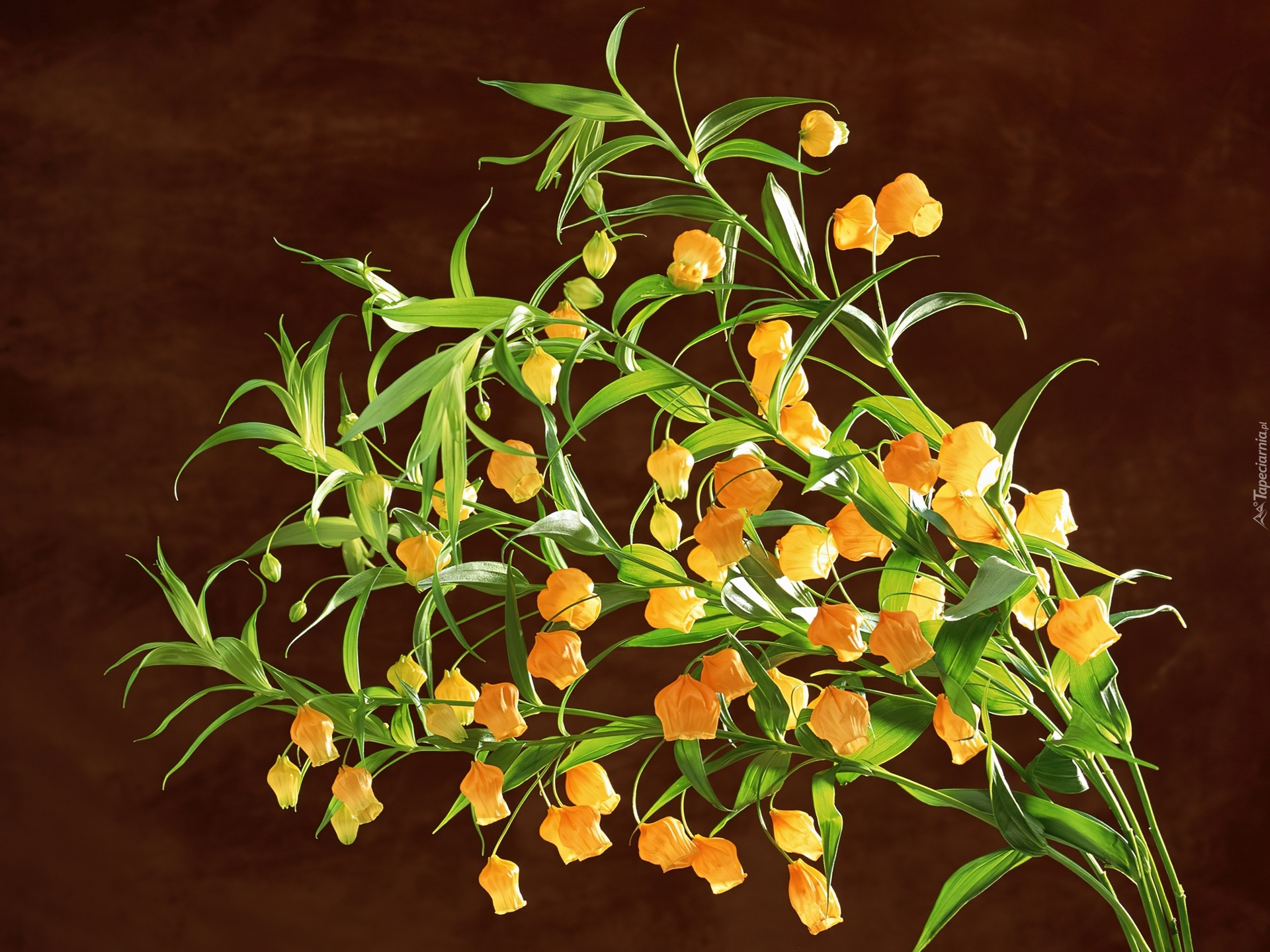 Edytor tapety: Pomarańczowe, Kwiaty, Zielone, Listki