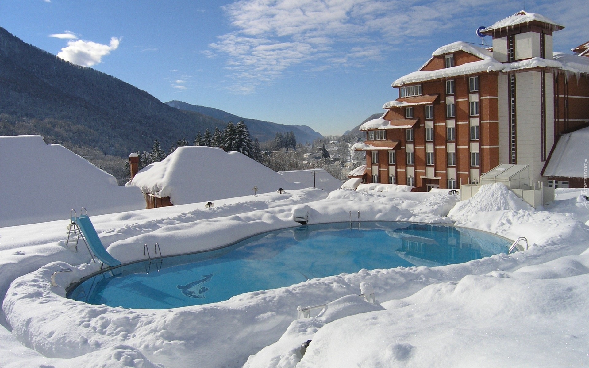 Edytor tapety: Góry, Pensjonat, Śnieg, Basen