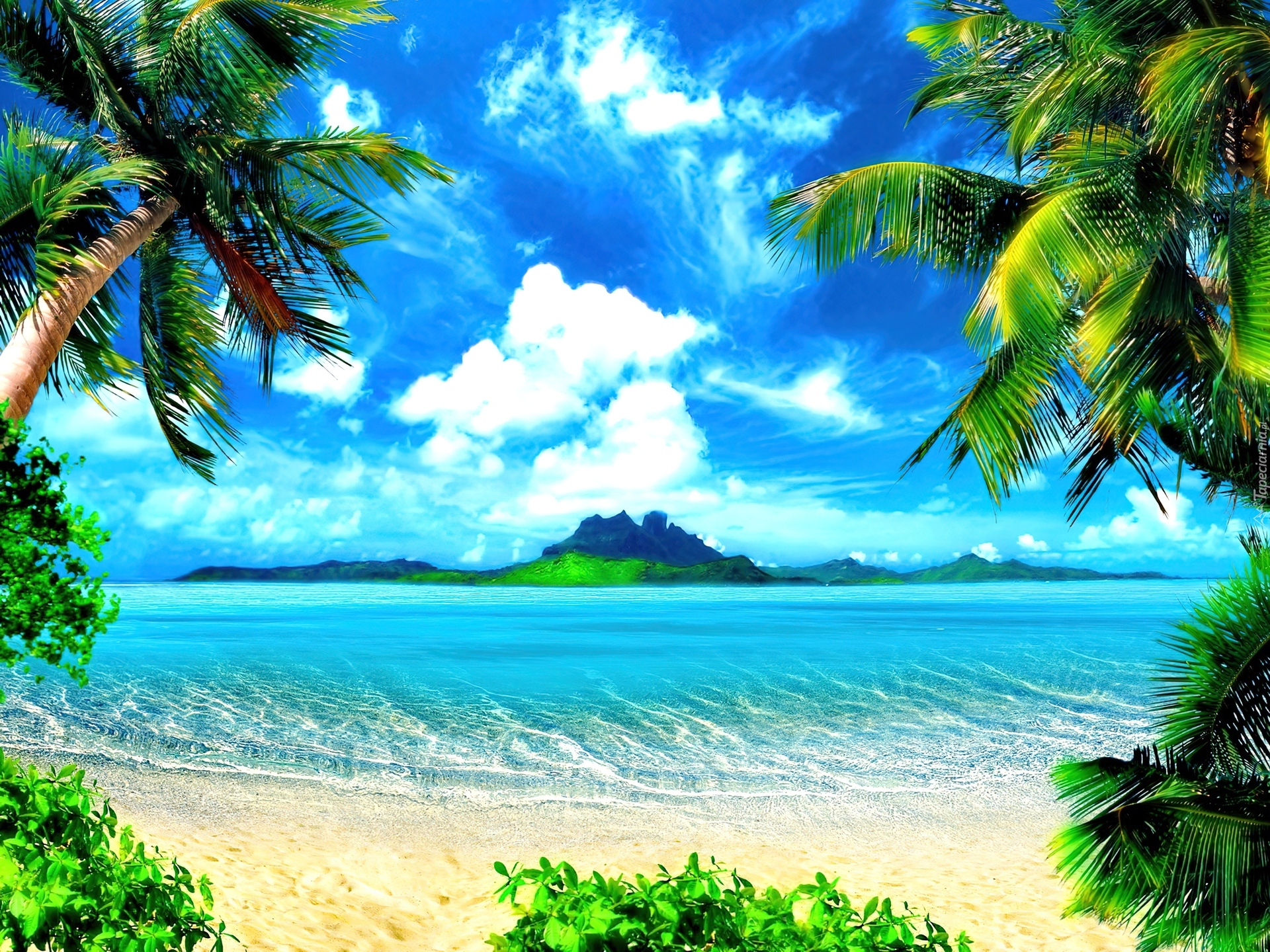 Edytor tapety: Palmy, Piasek, Morze, Chmury