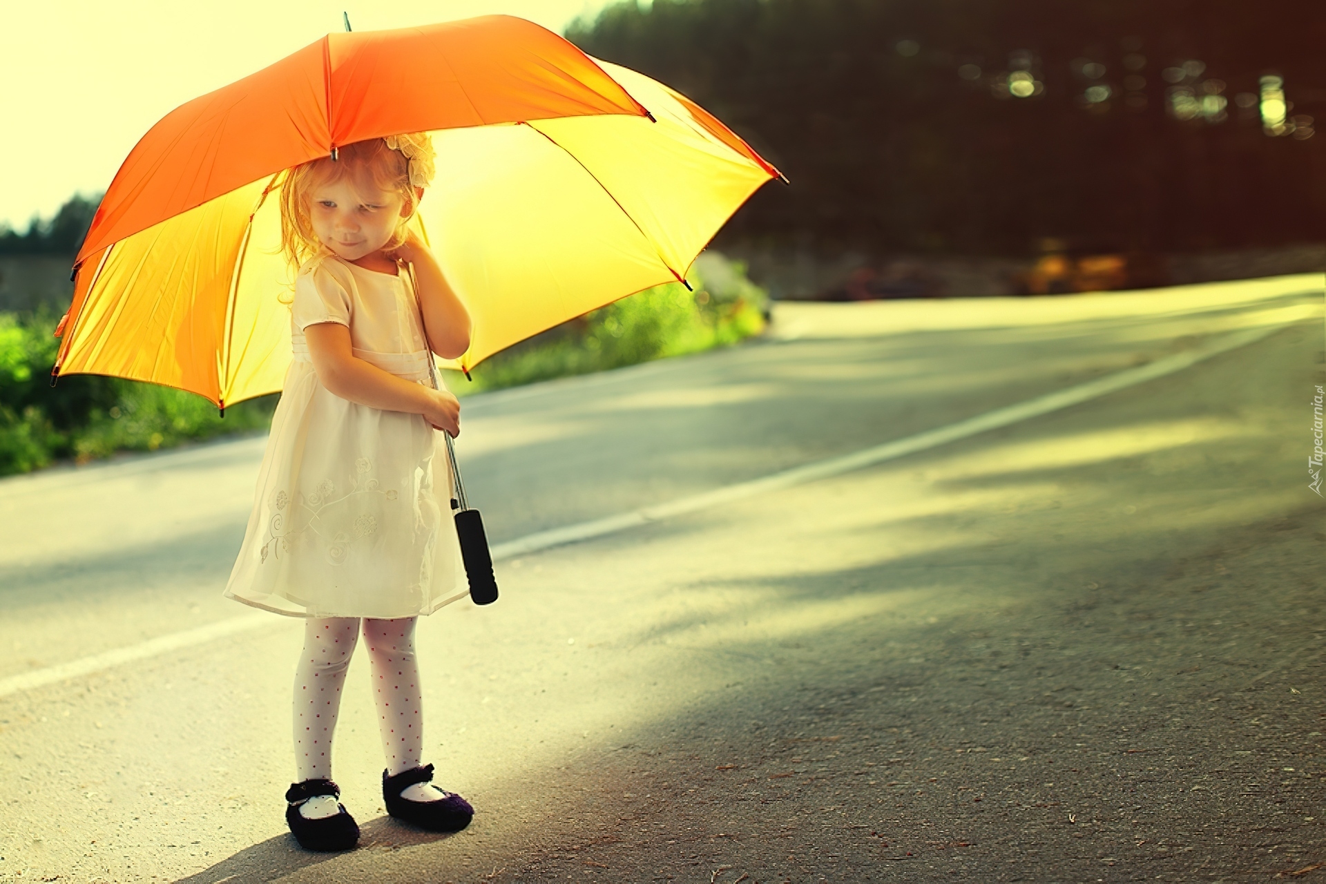 Edytor tapety: Dziewczynka, Parasol, Droga