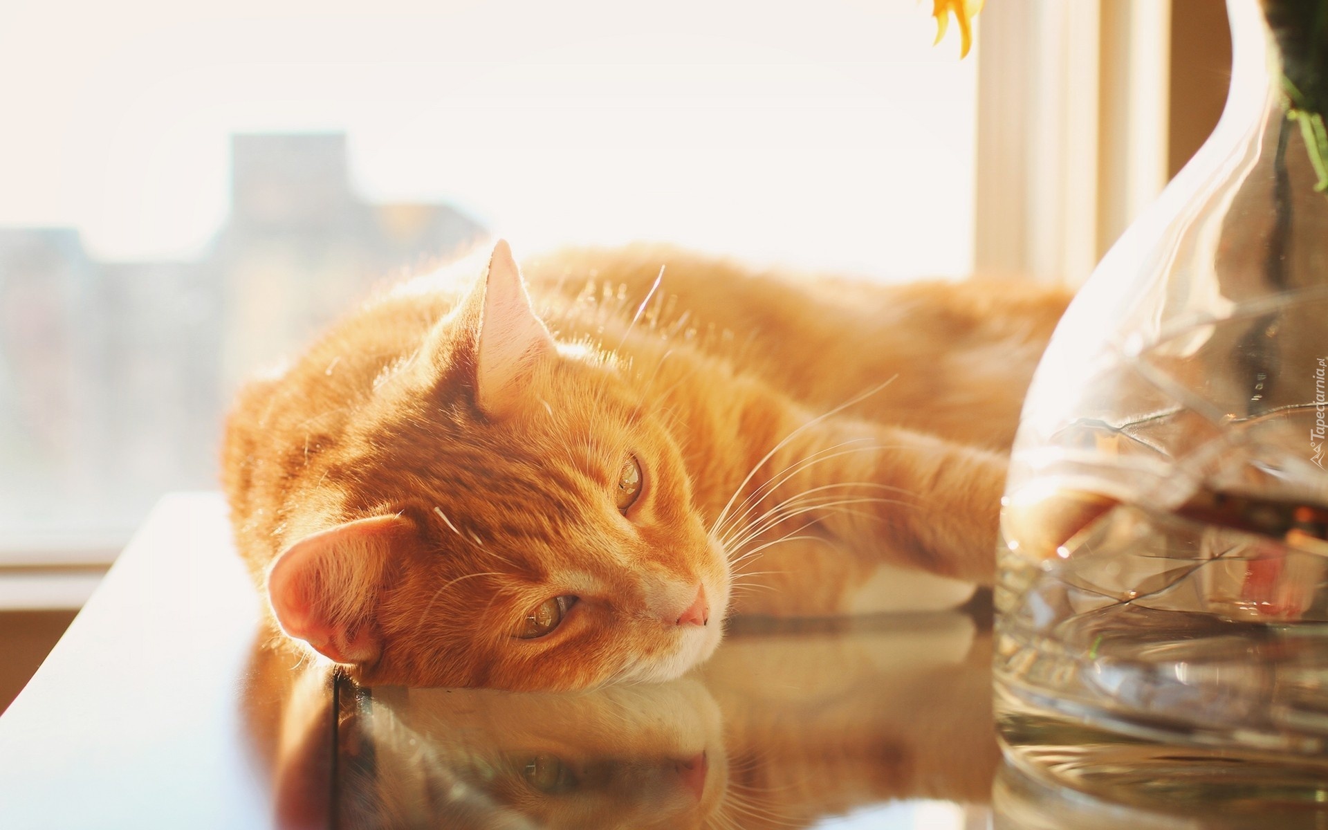 Edytor tapety: Rudy, Kot, Stół, Wazon