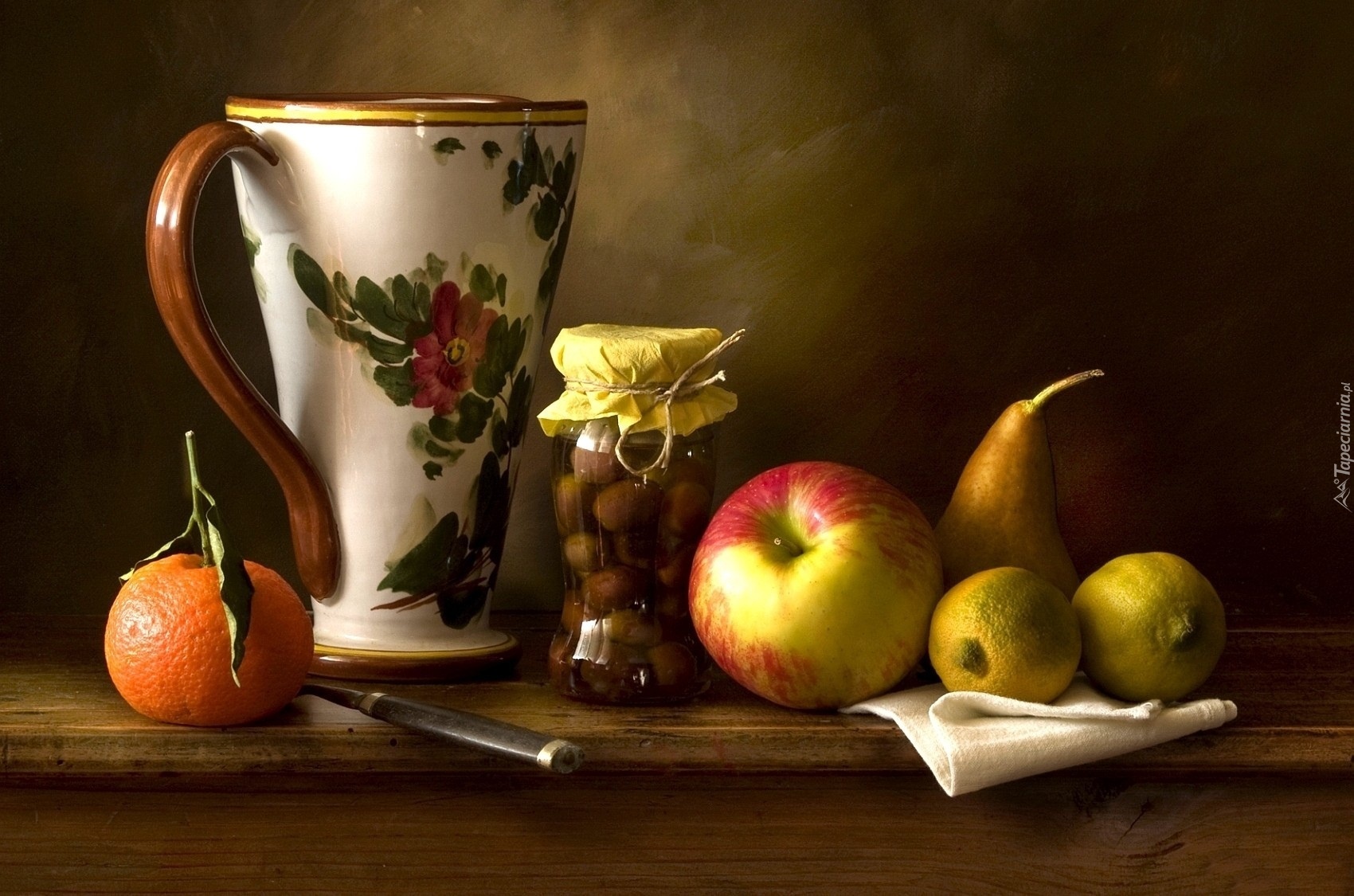 Edytor tapety: Owoce, Jabłko, Gruszki, Kubek, Przetwory, Słoik