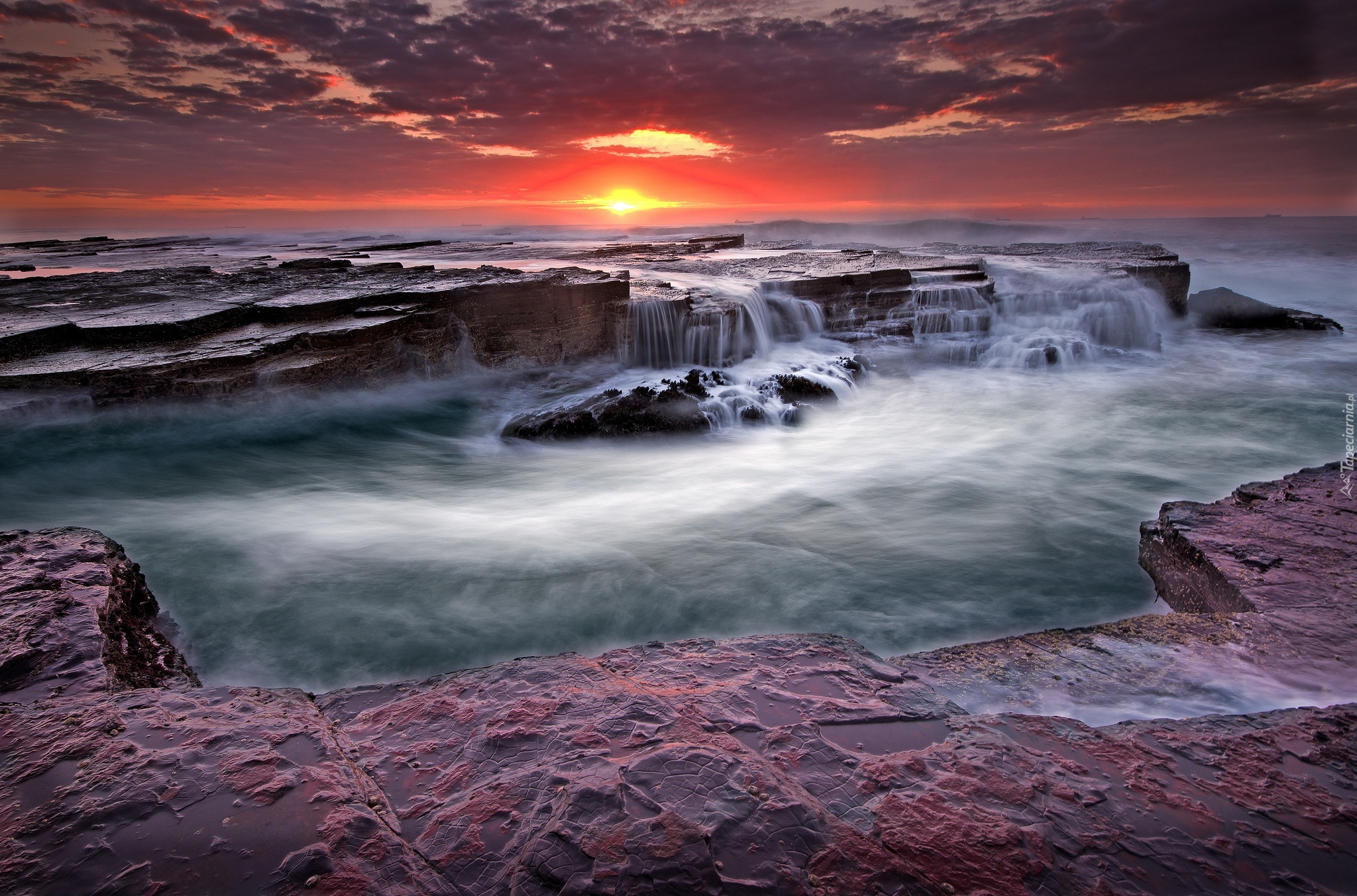 Edytor tapety: Wybrzeże, Zachód, Słońca, Wodospady