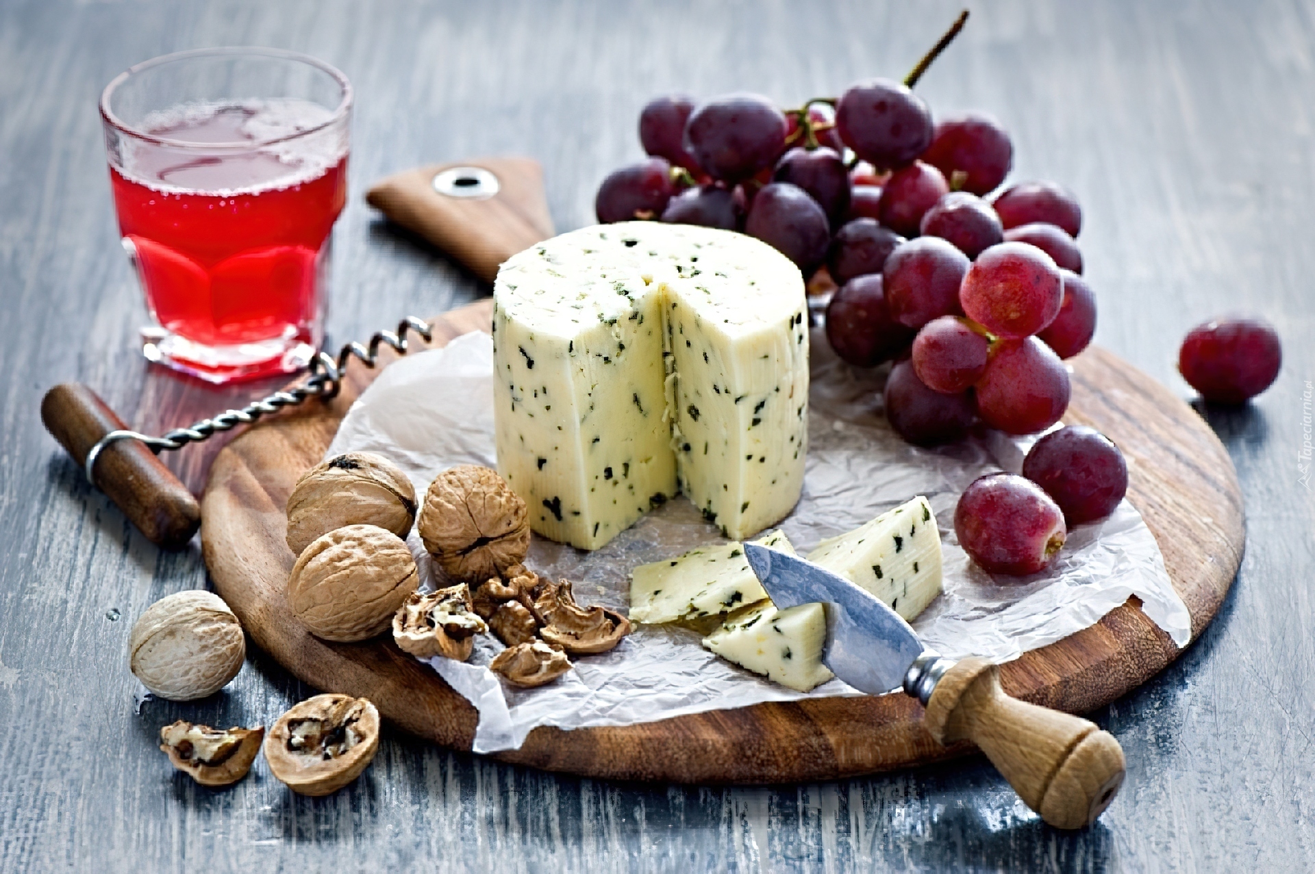 Edytor tapety: Ser, Winogrona, Orzechy, Wino
