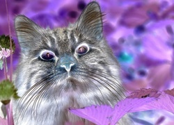 Edytor tapety: Kot, Kwiaty, Zieleń
