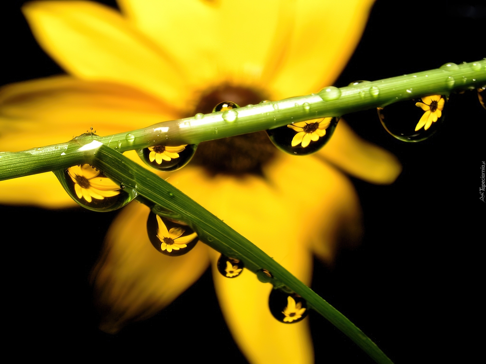 Edytor tapety: Żółty, Kwiat, Trawa, Krople, Rosy