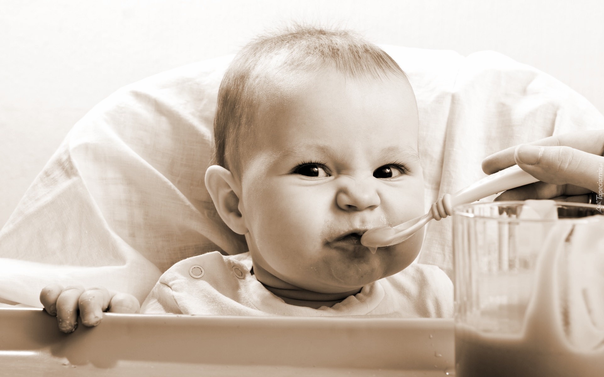 Edytor tapety: Dziecko, Łyżeczka, Jedzenie, Szklanka