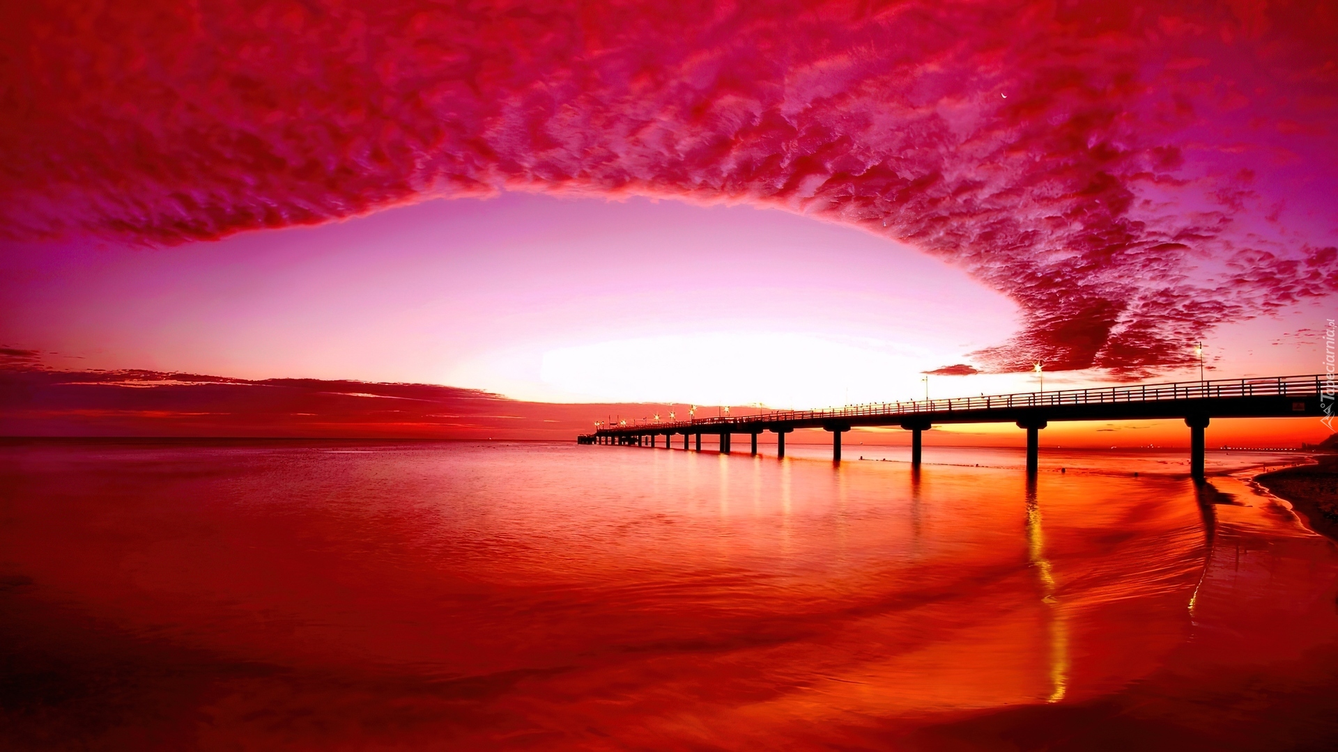Edytor tapety: Różowe, Chmury, Morze, Molo