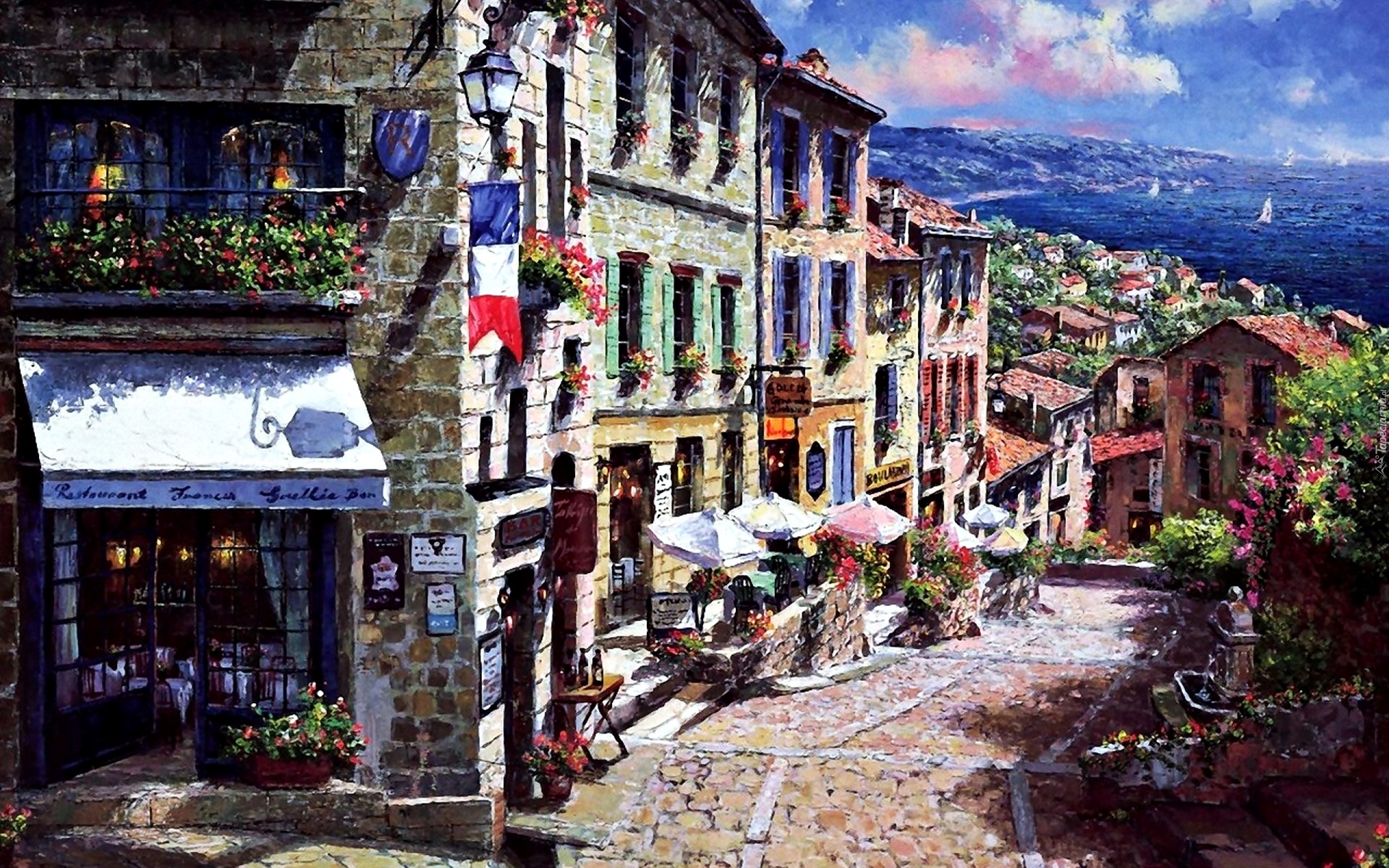 Edytor tapety: Kamienice, Woda, Góry, Widok