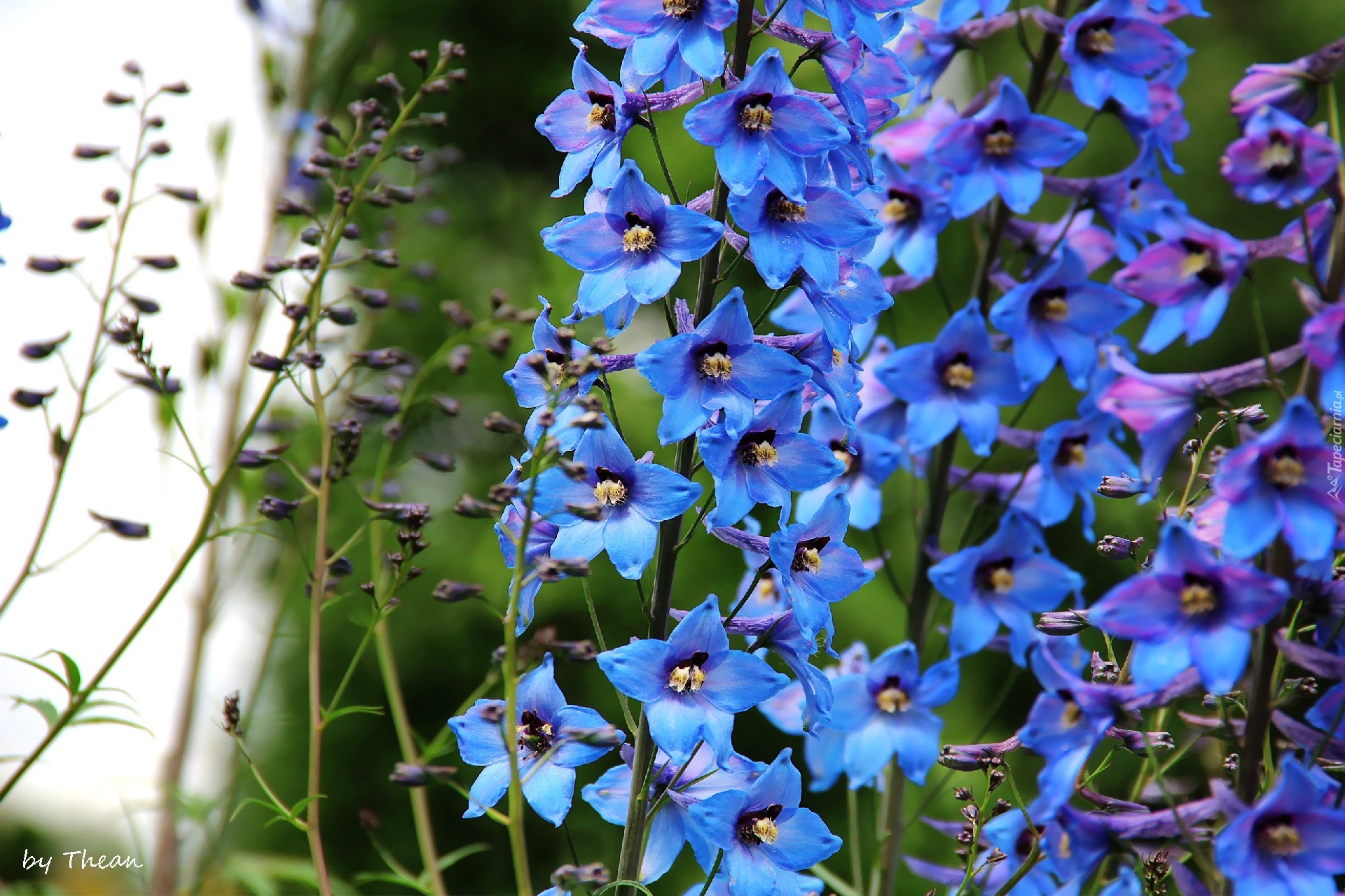 Edytor tapety: Niebieskie, Dzwonki, Kwiaty, Ostróżka ogrodowa