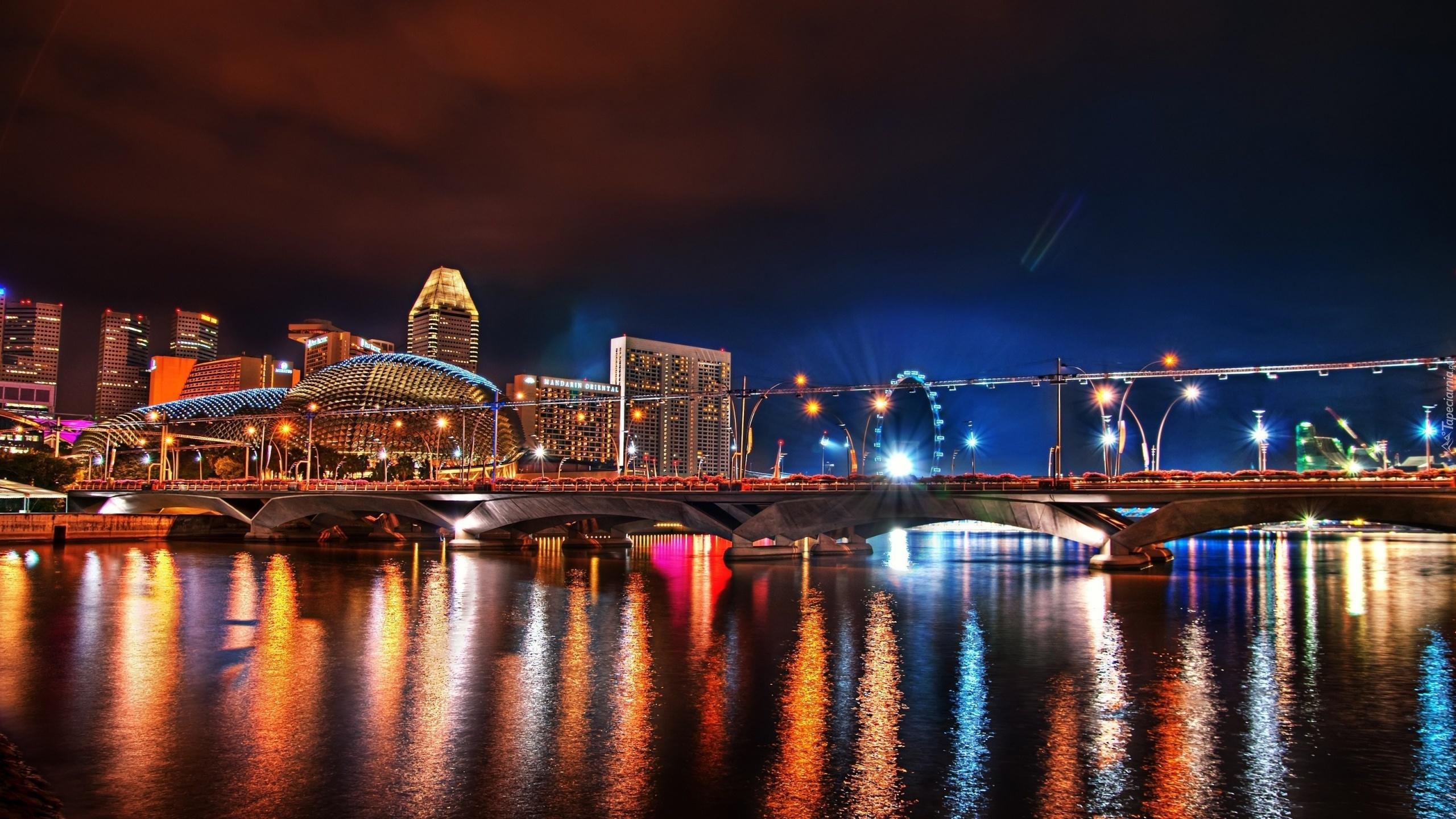 Edytor tapety: Miasto, Noc, Światła, Azja, Singapur