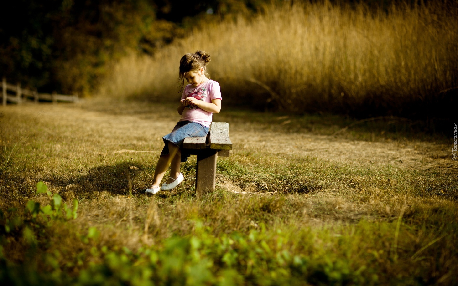 Edytor tapety: Dziewczynka, Ławeczka, Trawa