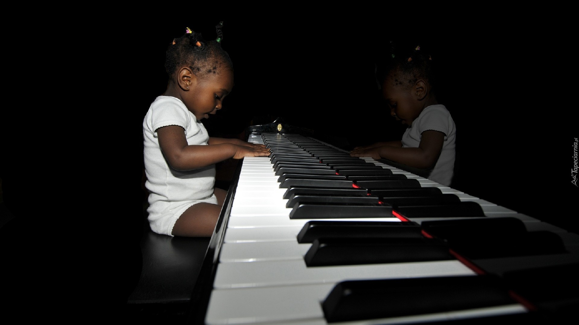 Edytor tapety: Dziewczynka, Klawisze, Lustro, Odbicie