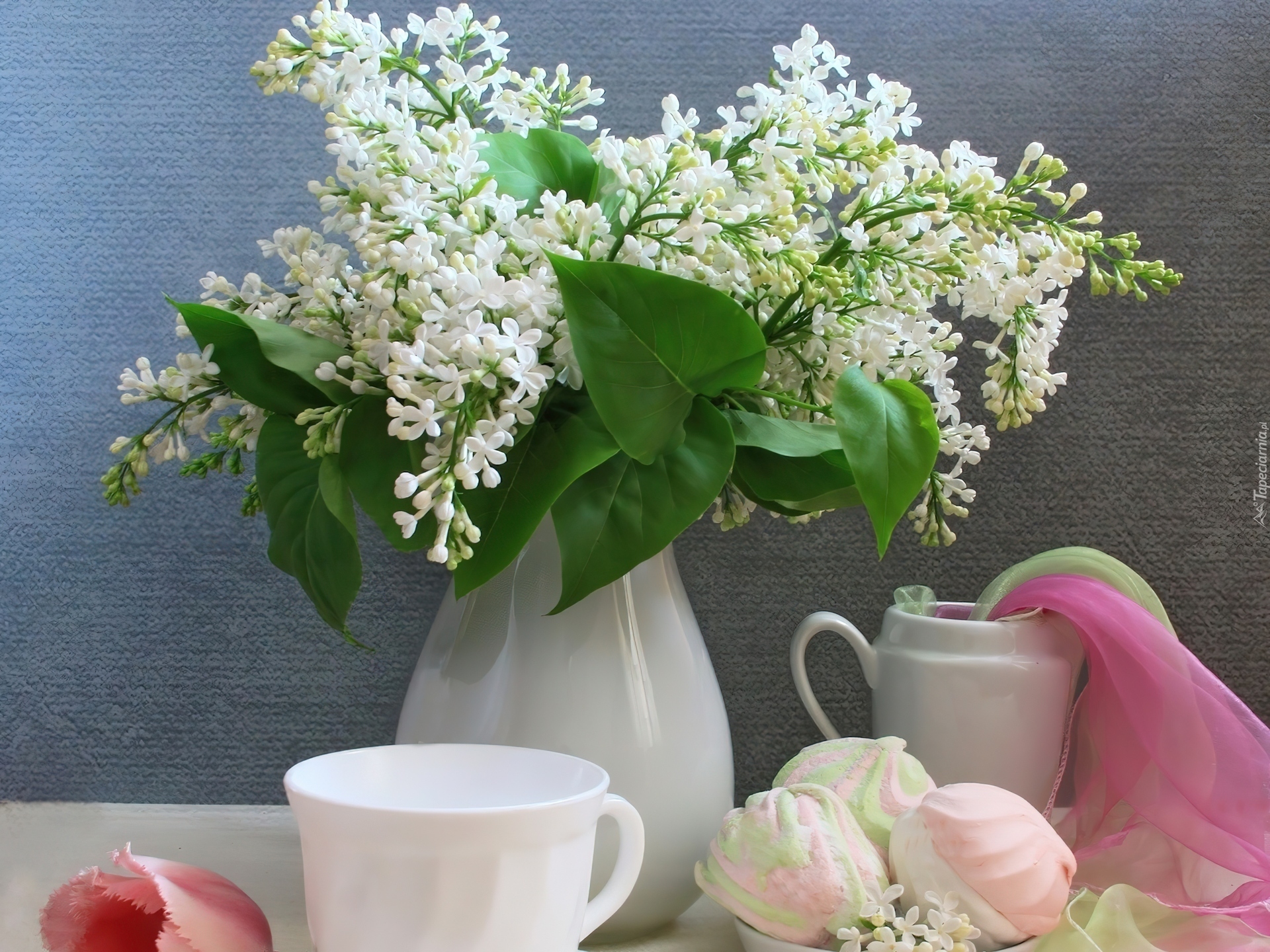 Edytor tapety: Biały, Bez, Wazon, Filiżanka, Bezy