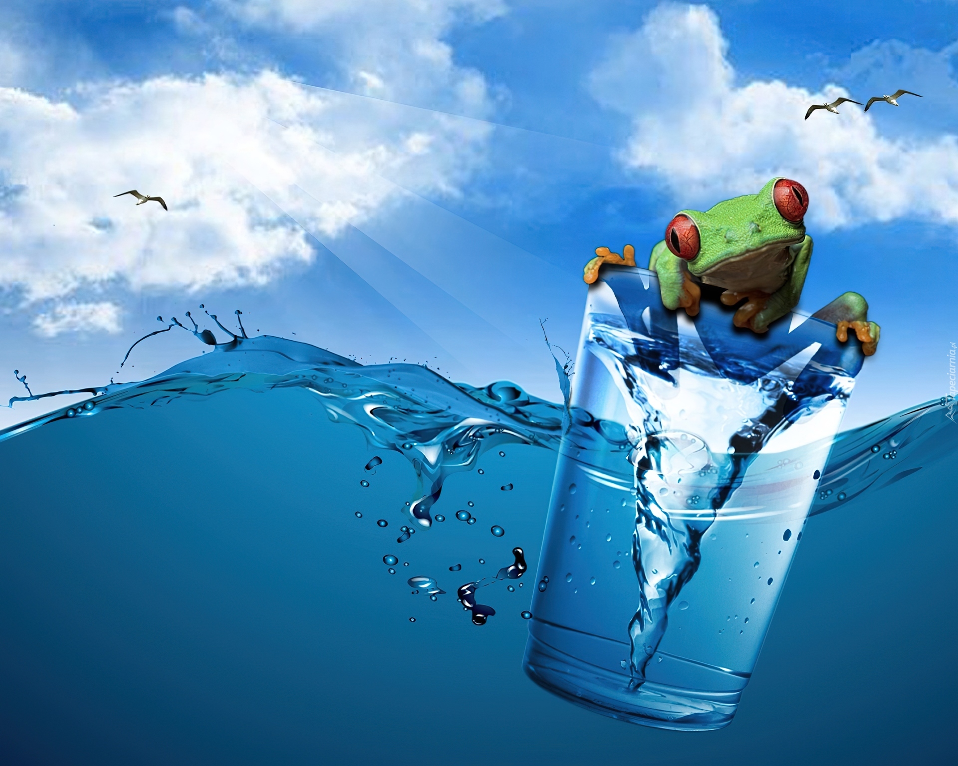 Edytor tapety: Żaba, Szklanka, Grafika, Komputerowa