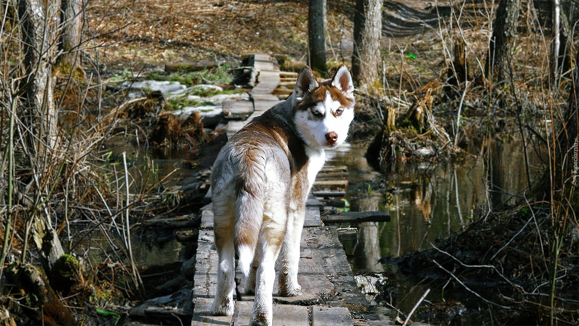 Edytor tapety: Pies, Drzewa, Woda