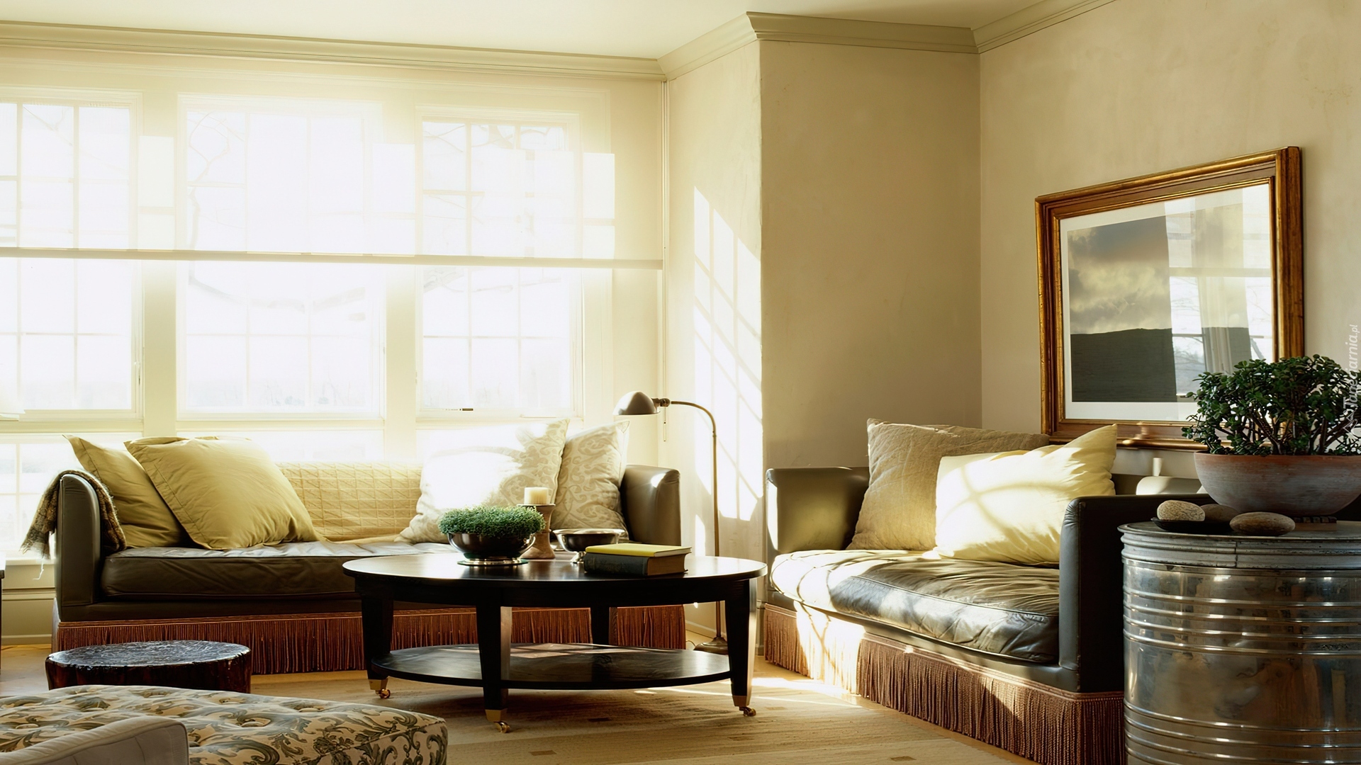 Edytor tapety: Słoneczny, Pokój, Stół, Kanapa, Okno, Obraz