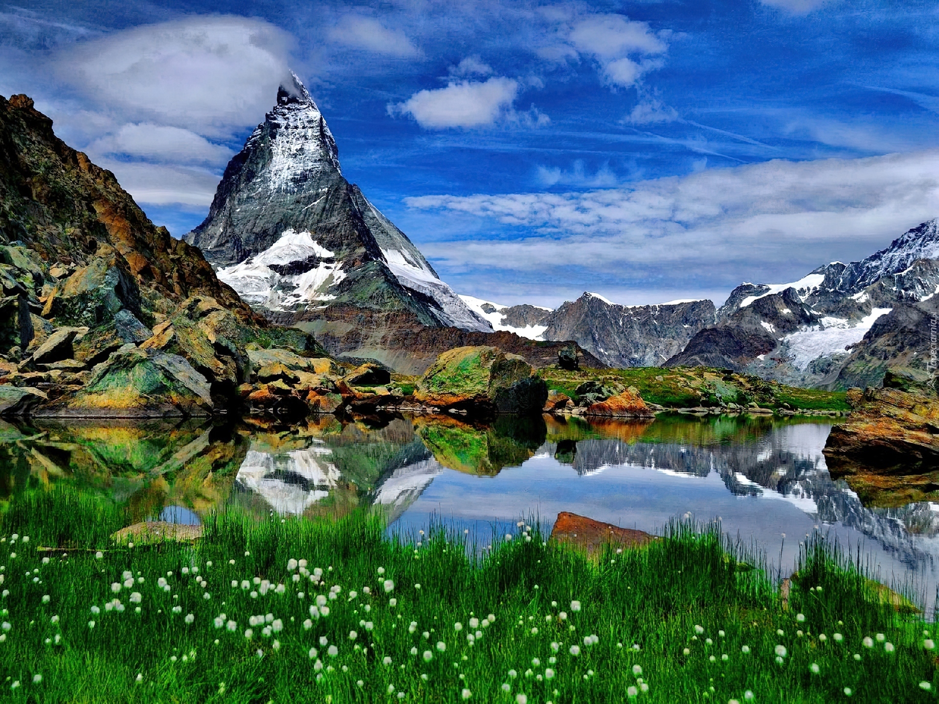 Edytor tapety: Góry, Jezioro, Trawa