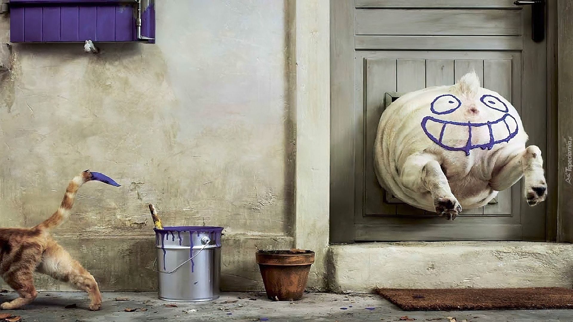 Edytor tapety: Pies, Malunek, Drzwi, Kot, Farba