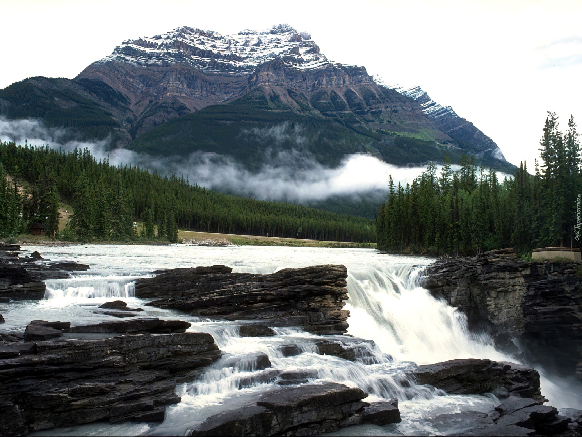 Edytor tapety: Kanada, Wodospad, Drzewa, Góry