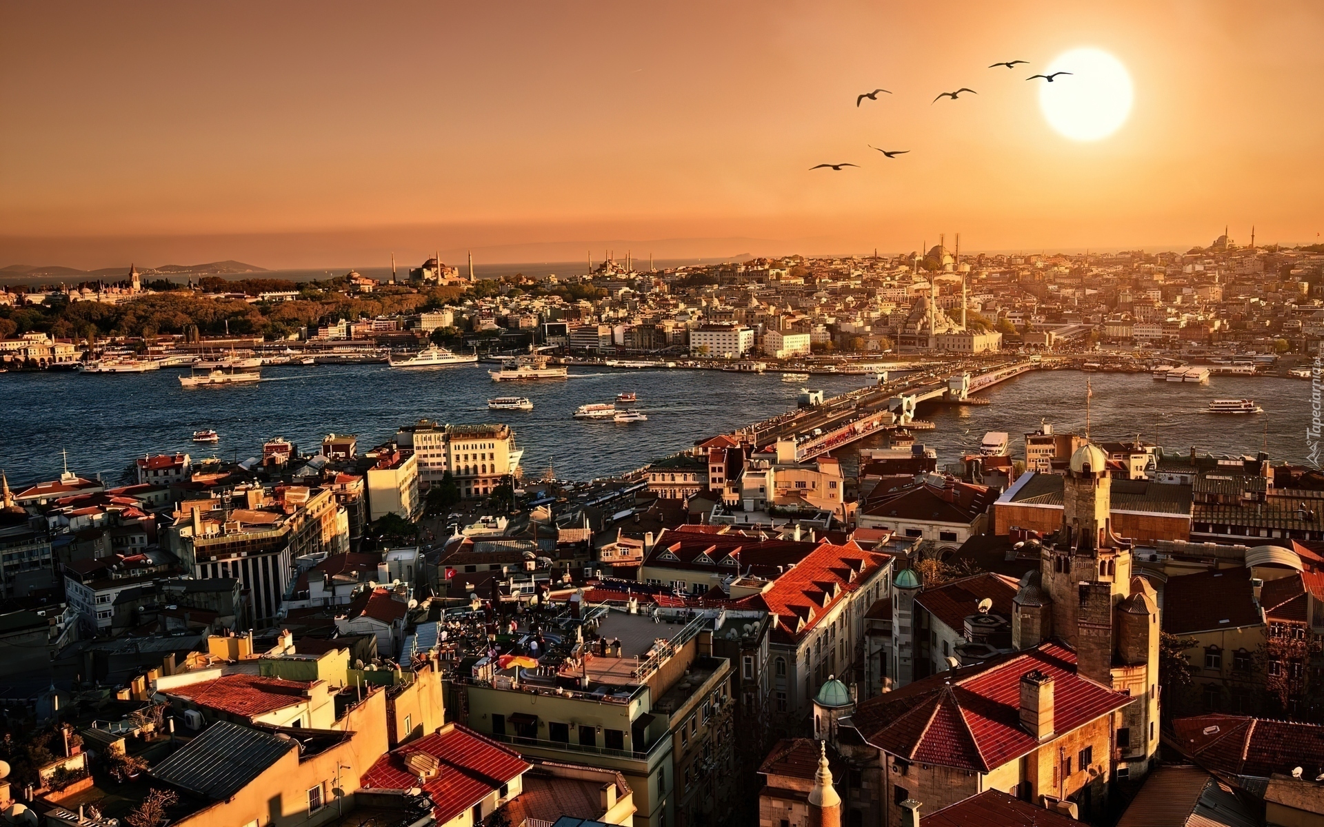 Edytor tapety: Panorama, Miasta, Rzeka, Ptaki