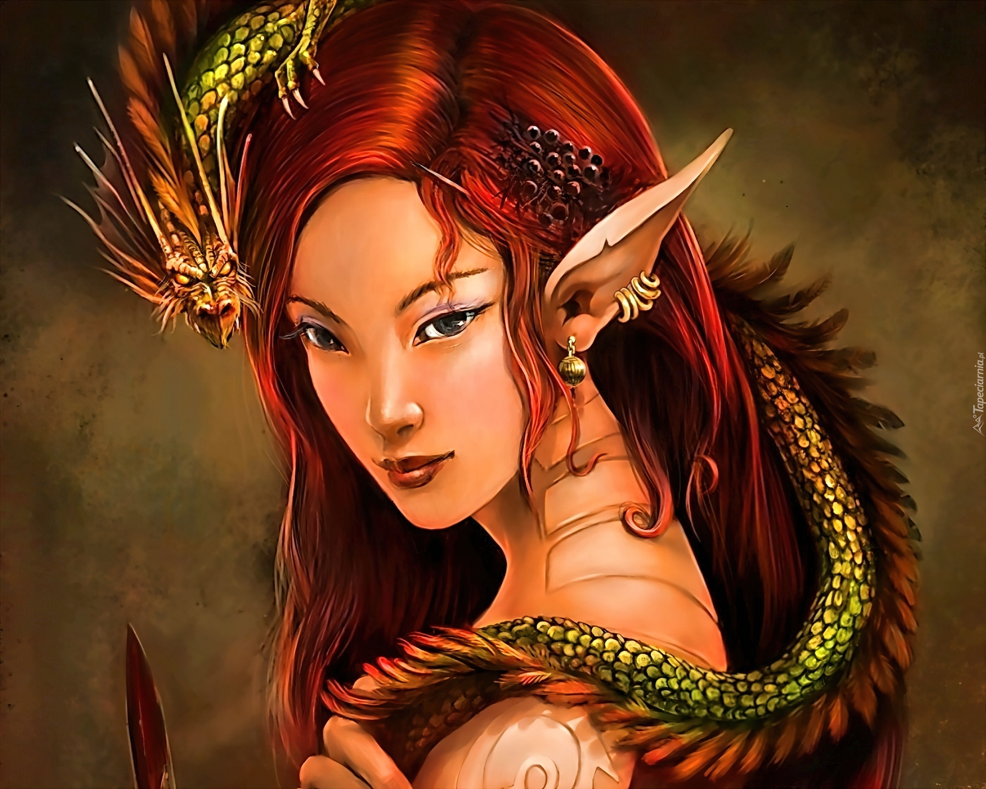 Edytor tapety: Dziewczyna, Elf, Wąż