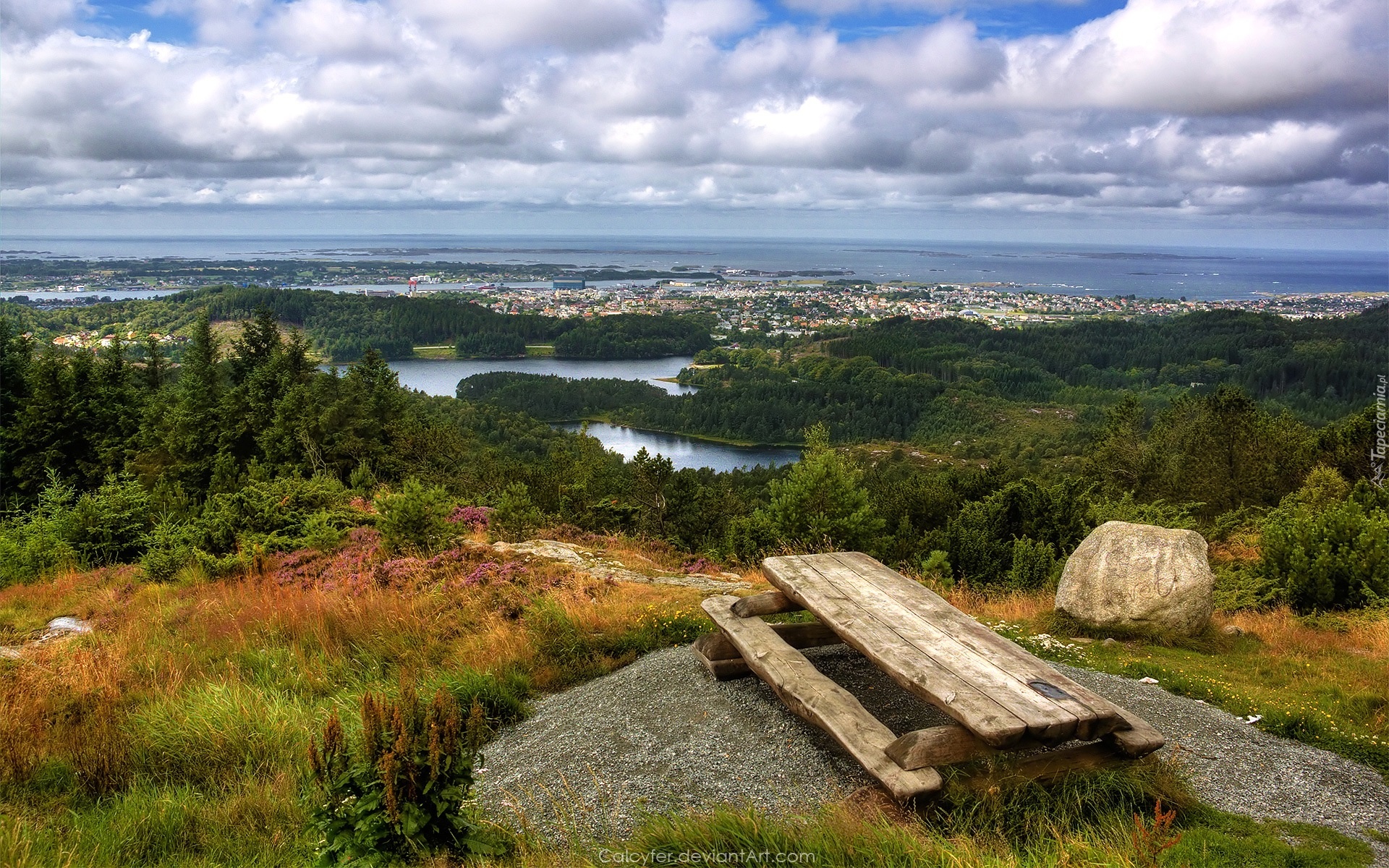 Edytor tapety: Morze, Zatoka, Ławeczka