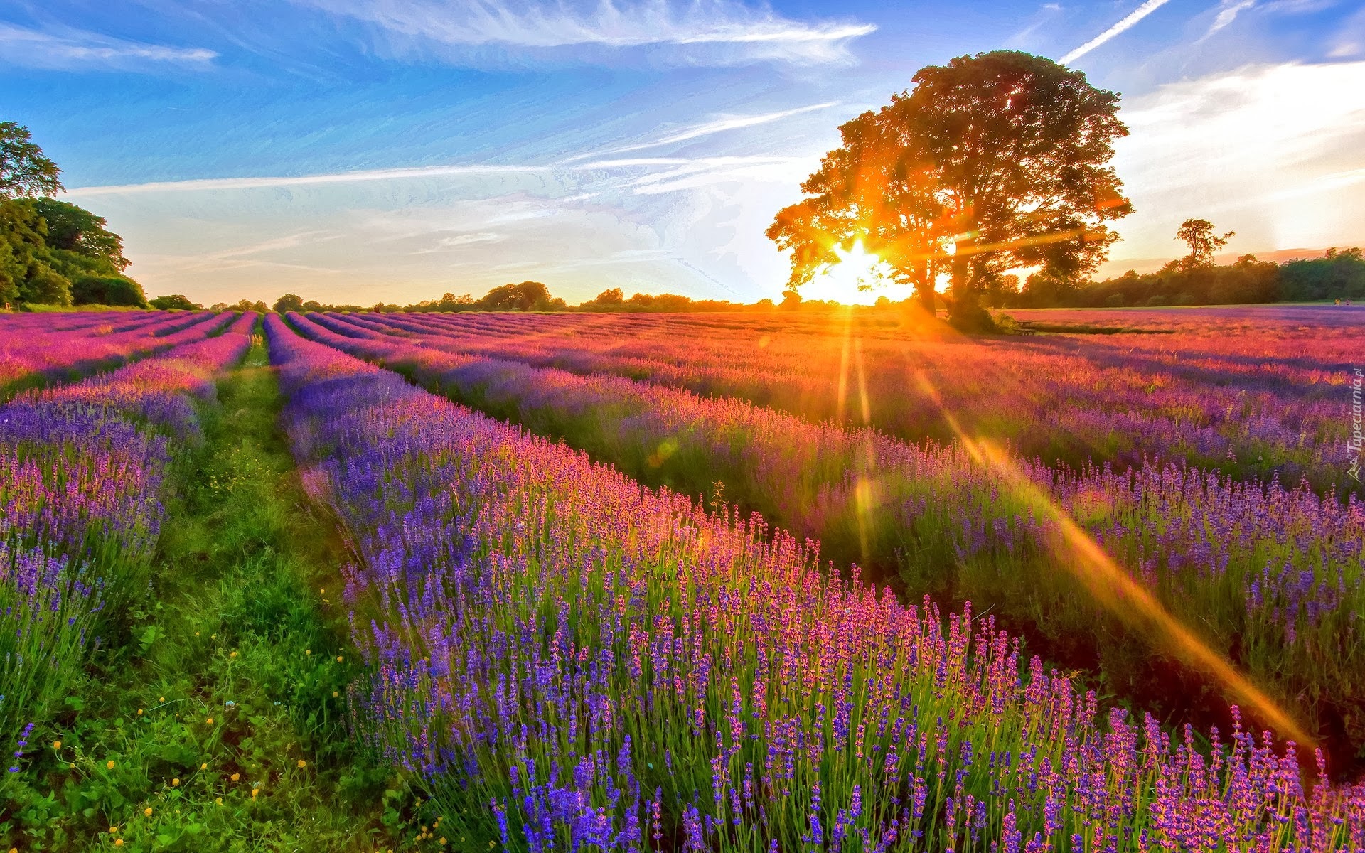 Edytor tapety: Pole, Lawenda, Zachód, Słońca