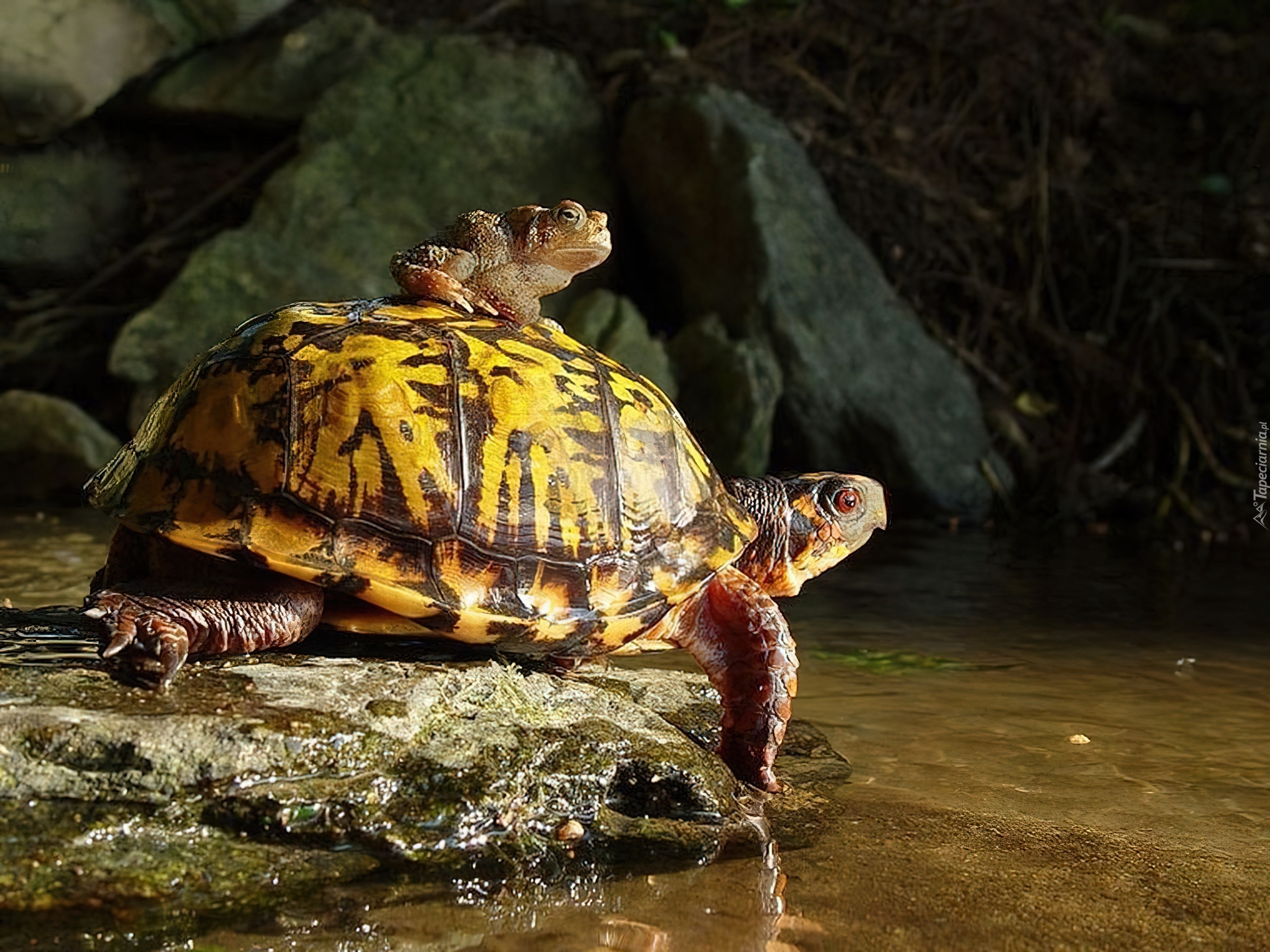 Edytor tapety: Żółw, Żaba, Woda, Skały