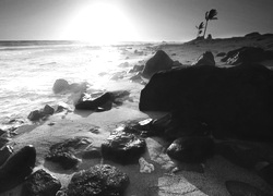 Edytor tapety: Zachód, Słońca, Morze, Kamienie
