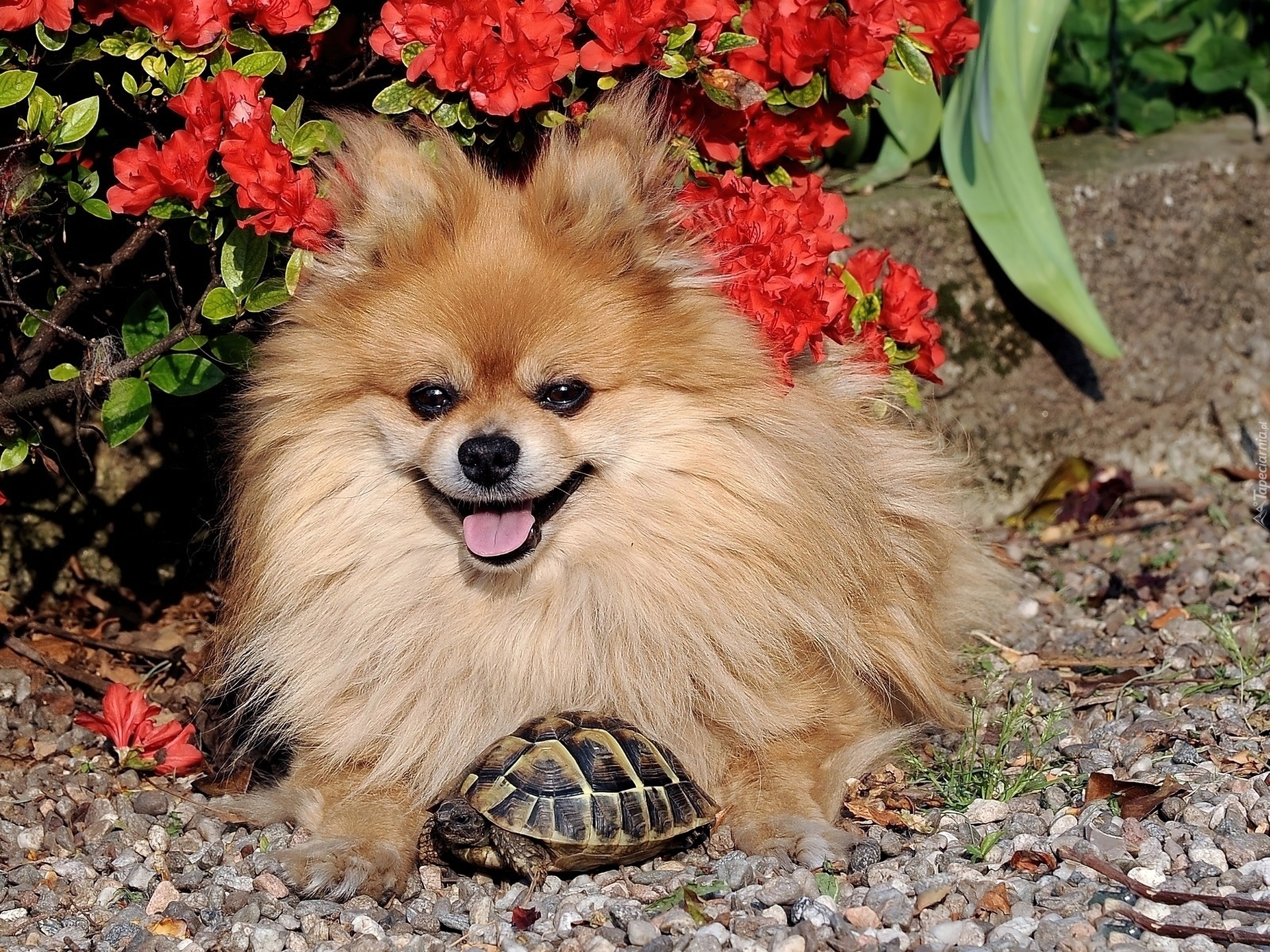 Edytor tapety: Szpic, Ogród, Przyjaciel, Żółw