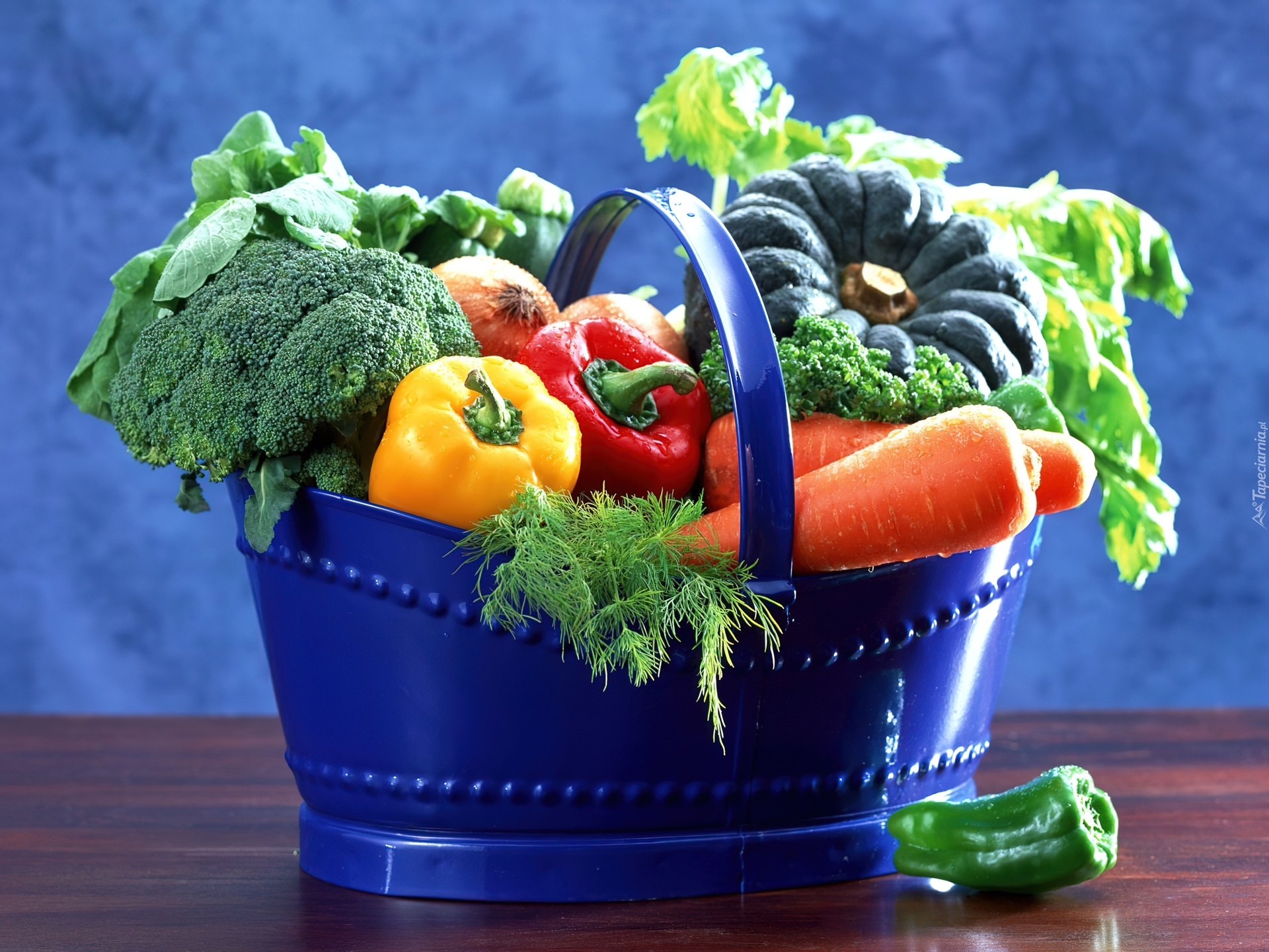 Edytor tapety: Niebieski, Kosz, Warzywa