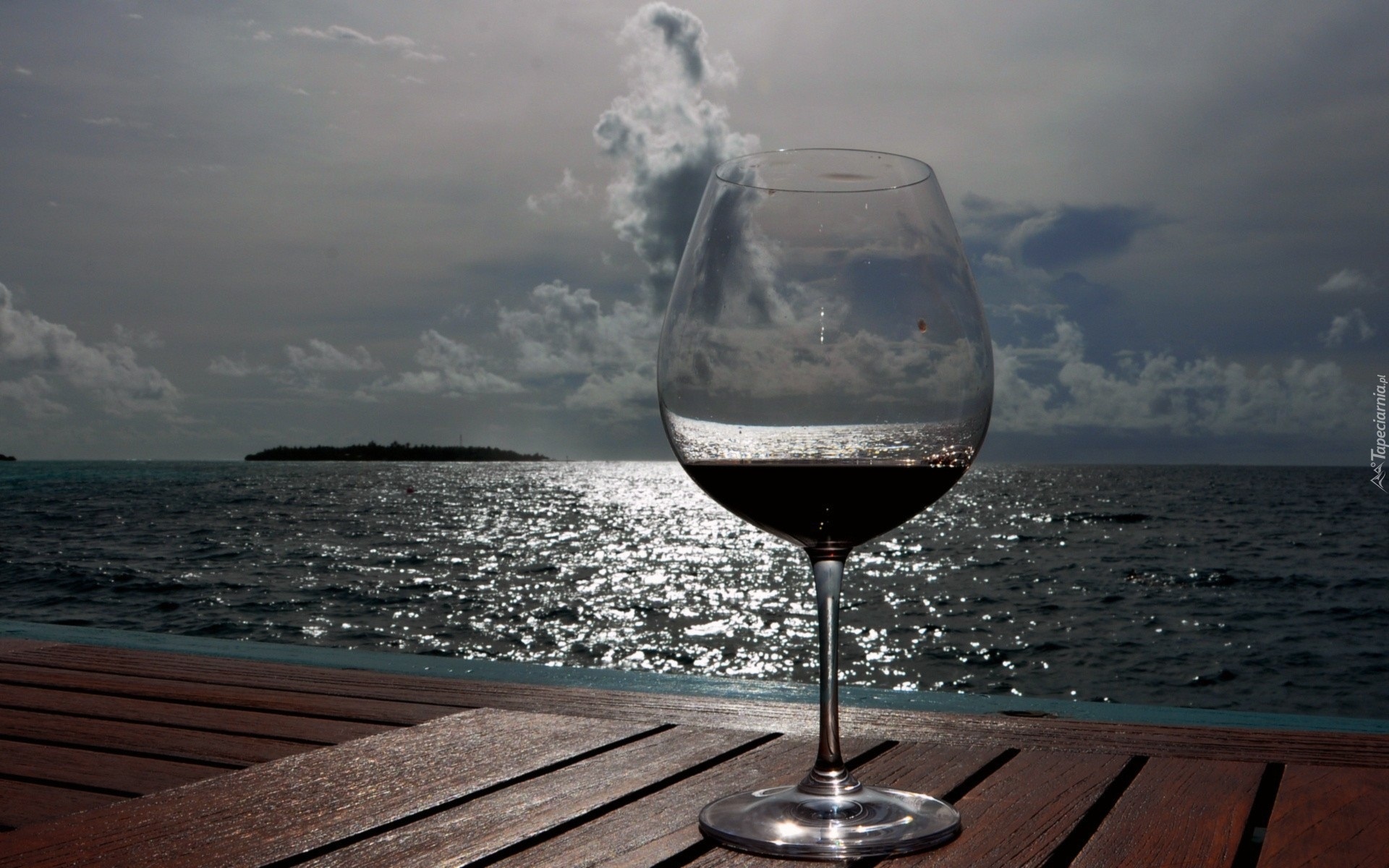 Edytor tapety: Pochmurne, Morze, Molo, Lampka, Wina