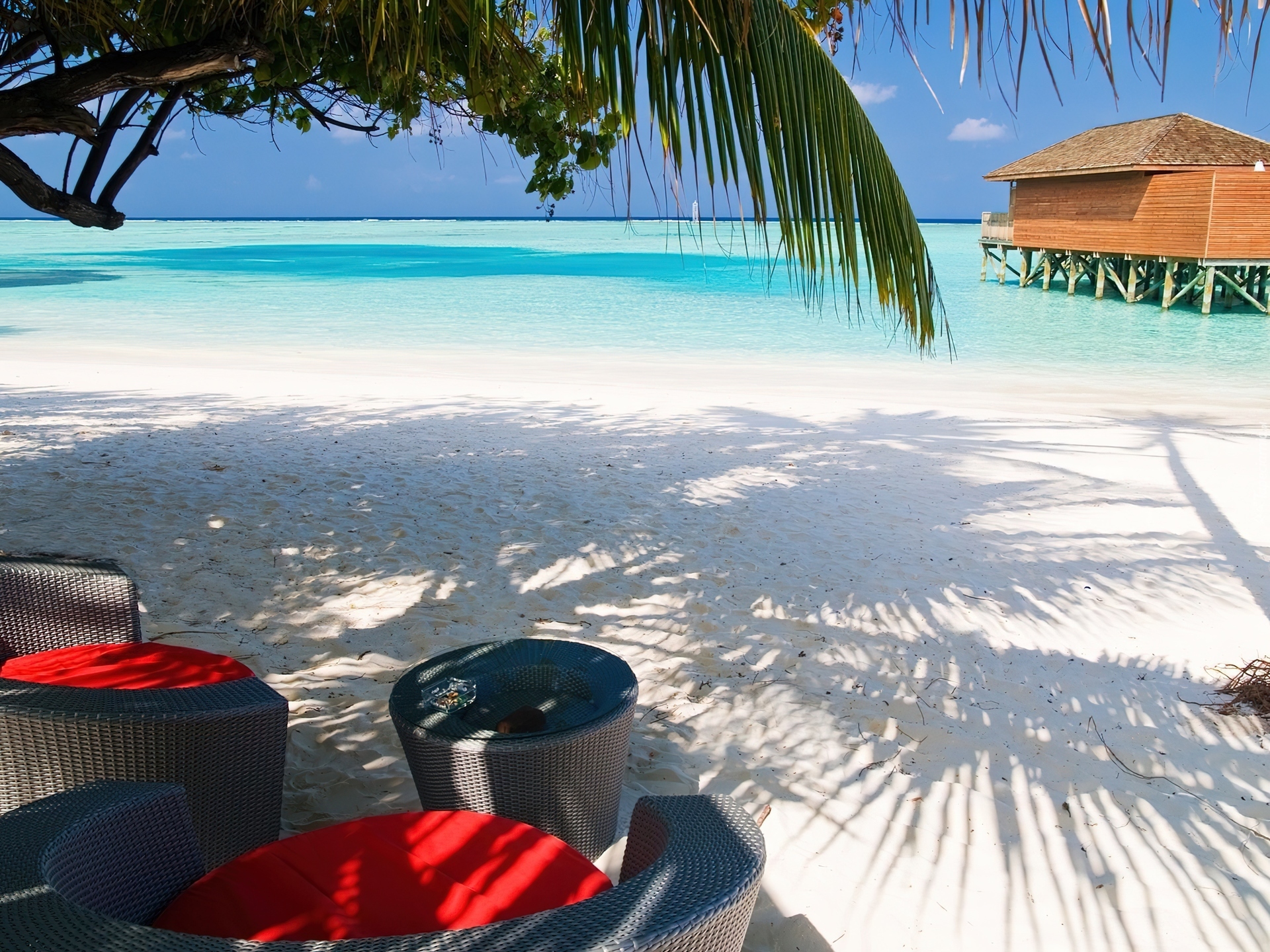 Edytor tapety: Plaża, Palma, Chata