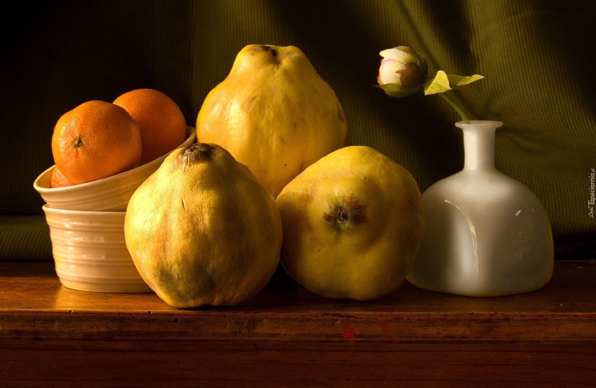 Edytor tapety: Pigwy, Mandarynki, Wazonik, Kwiat, Miseczki
